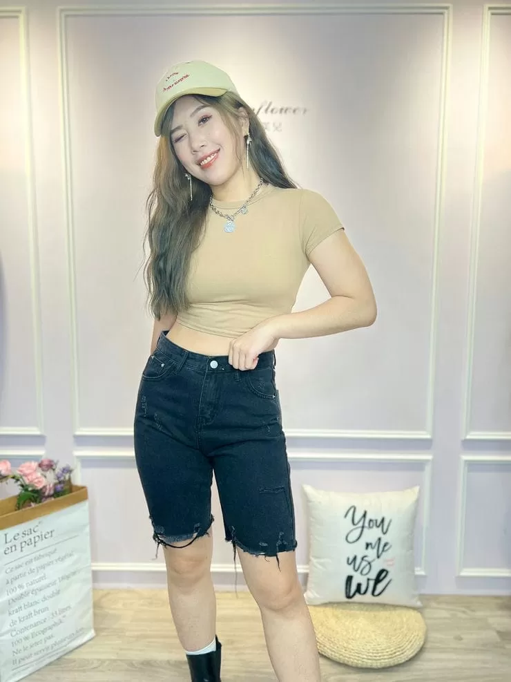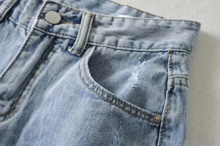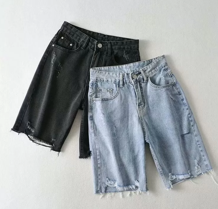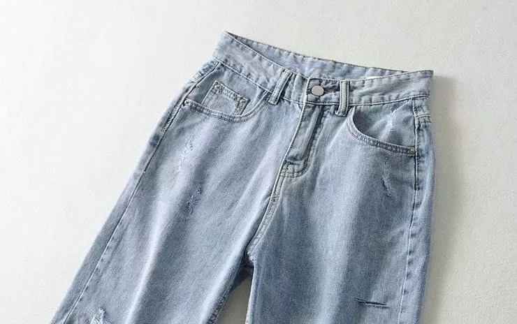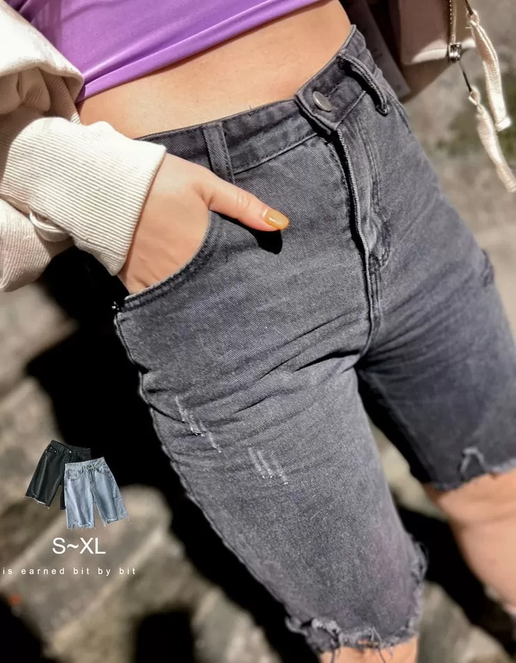 激瘦刷破牛仔五分褲