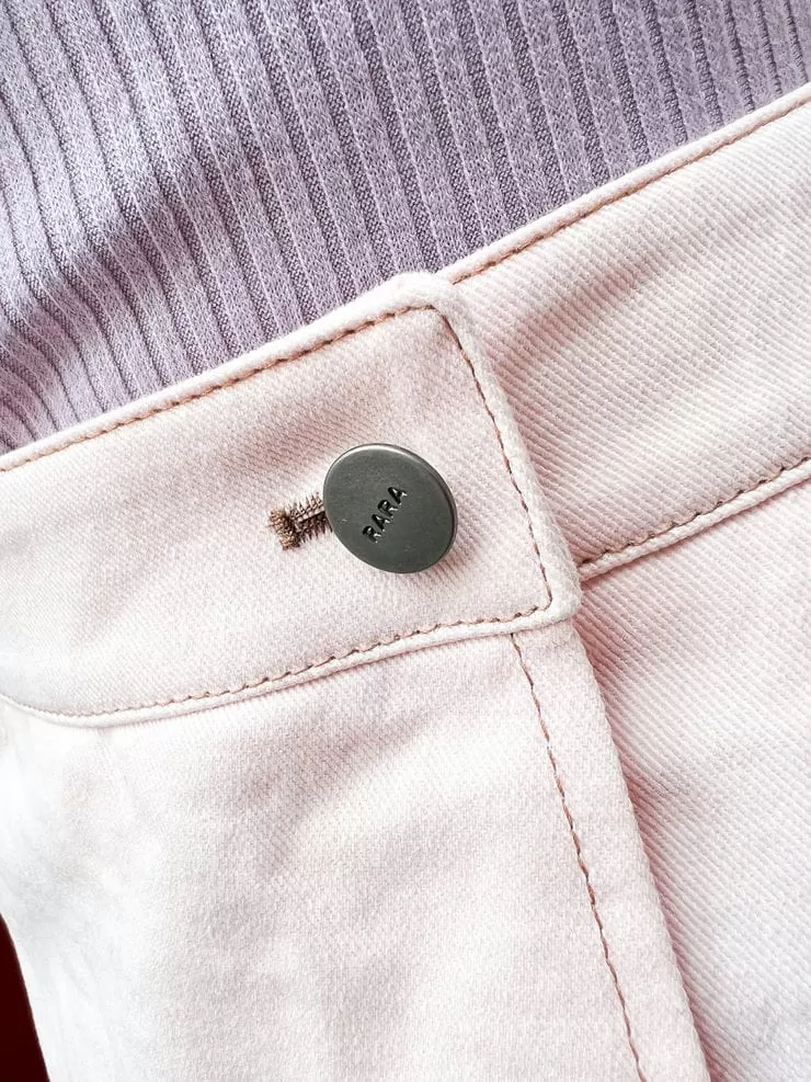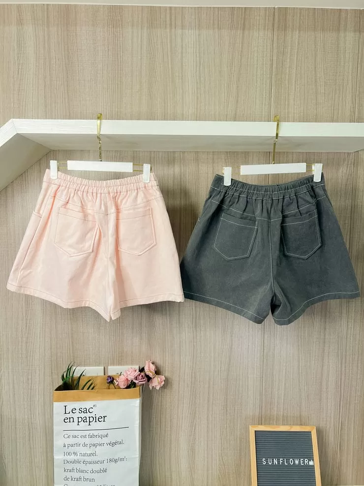 素色的褲體,採用高密度車縫線做線條造型