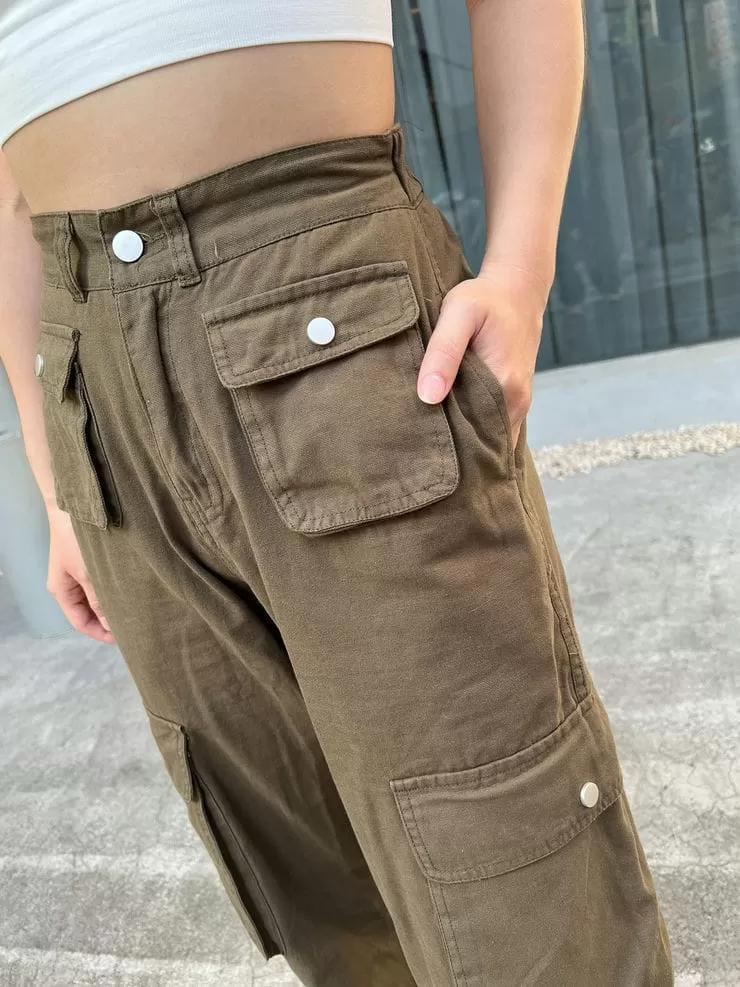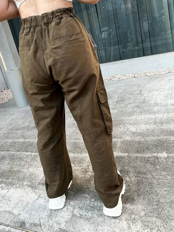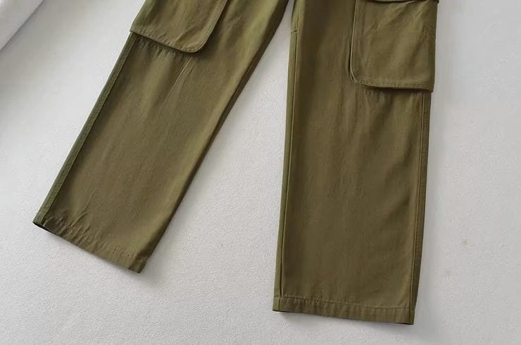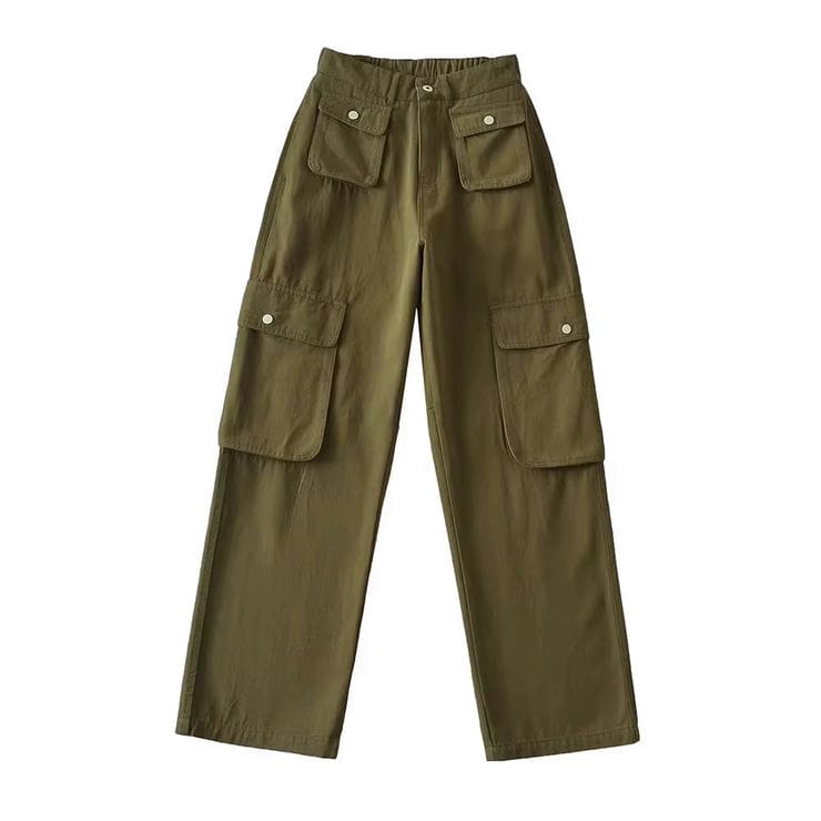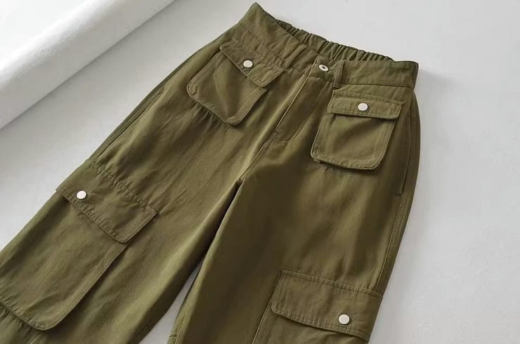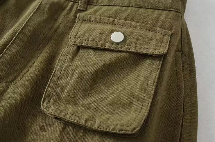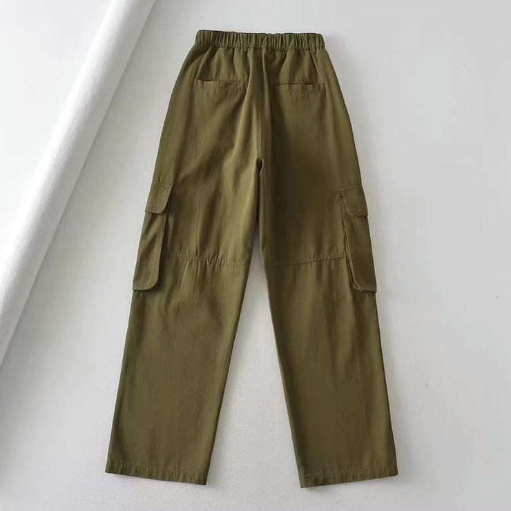 美拉德 超顯瘦-高腰A字口袋工裝褲