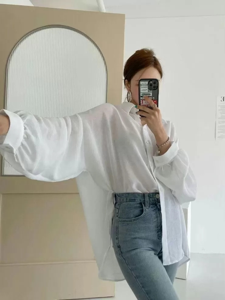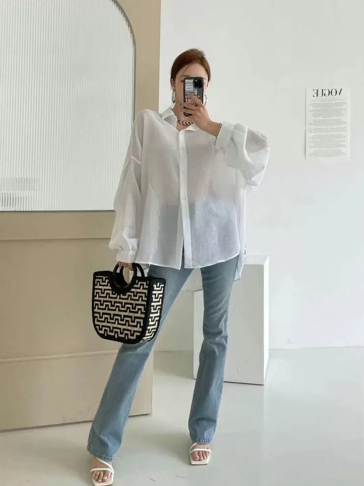 內裏搭配短版上衣的微透感,讓人有種氣質小性感