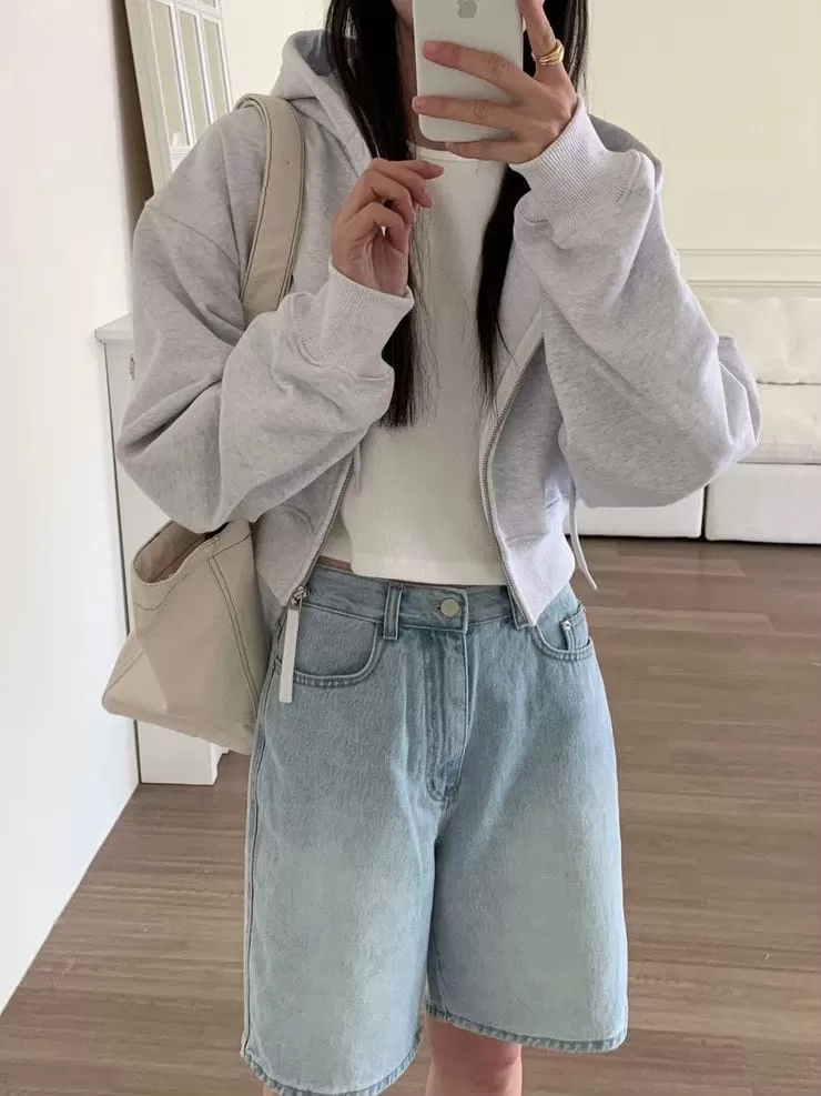 韓國品牌 Bleecker 設計款 落肩短版連帽外套