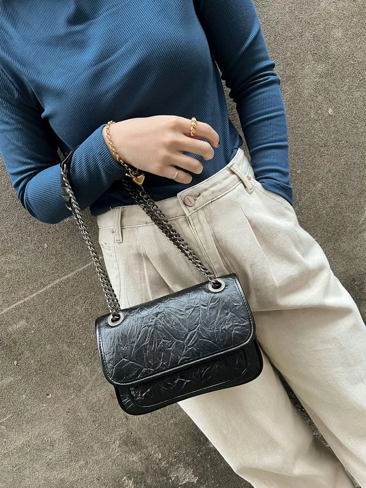 經典款 |頭層牛皮|手抓紋|郵差鏈條包