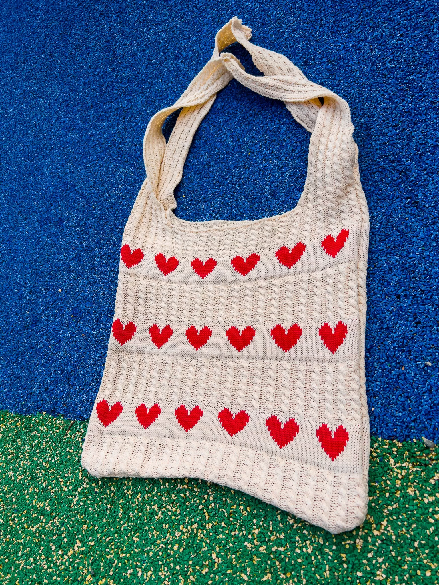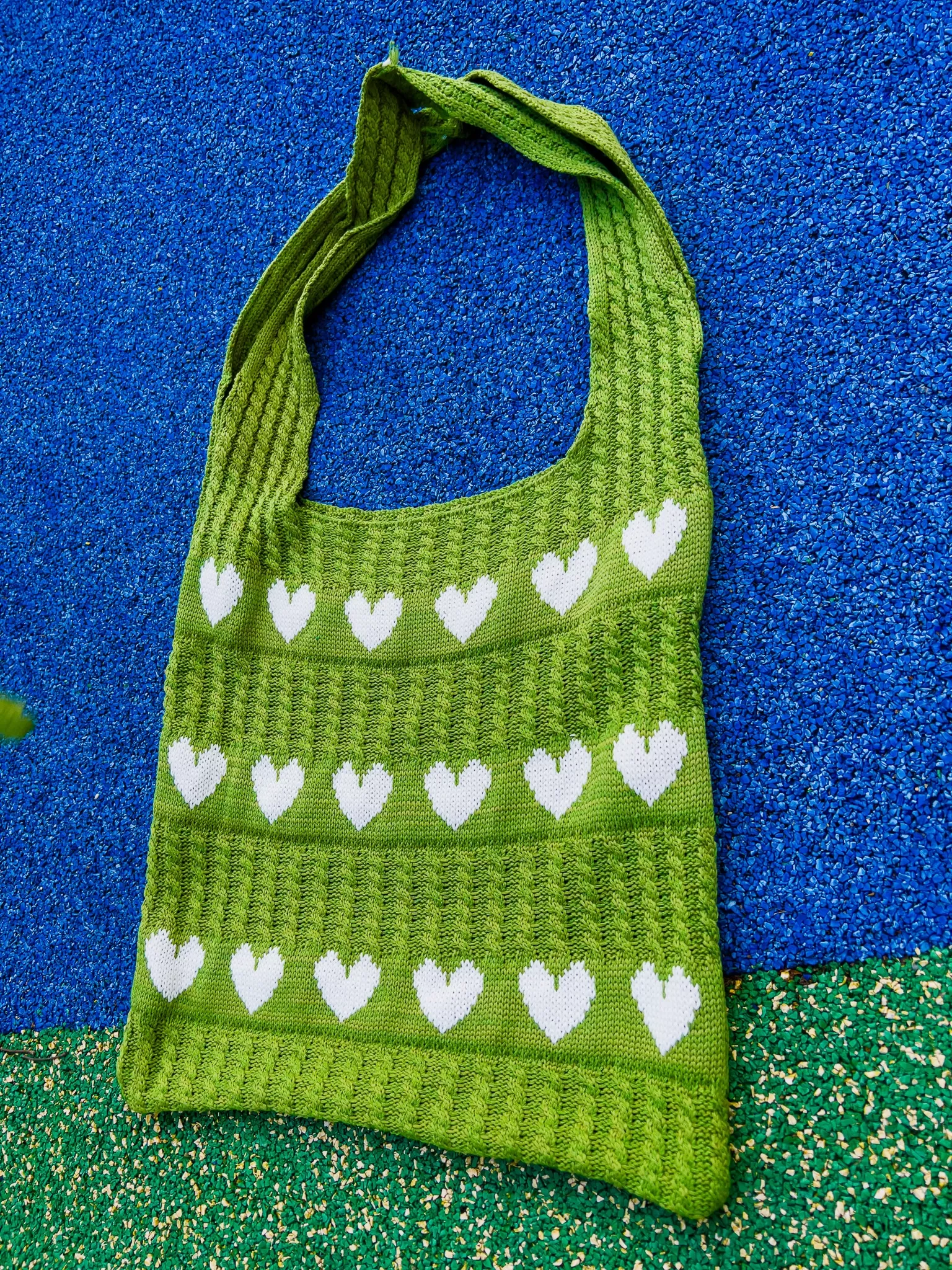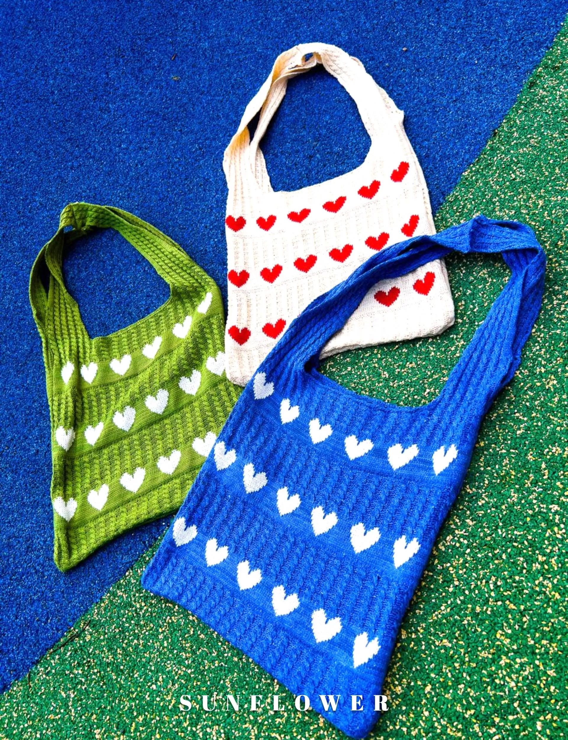 日系|針織編織|滿滿愛心|手提單肩包 |3色