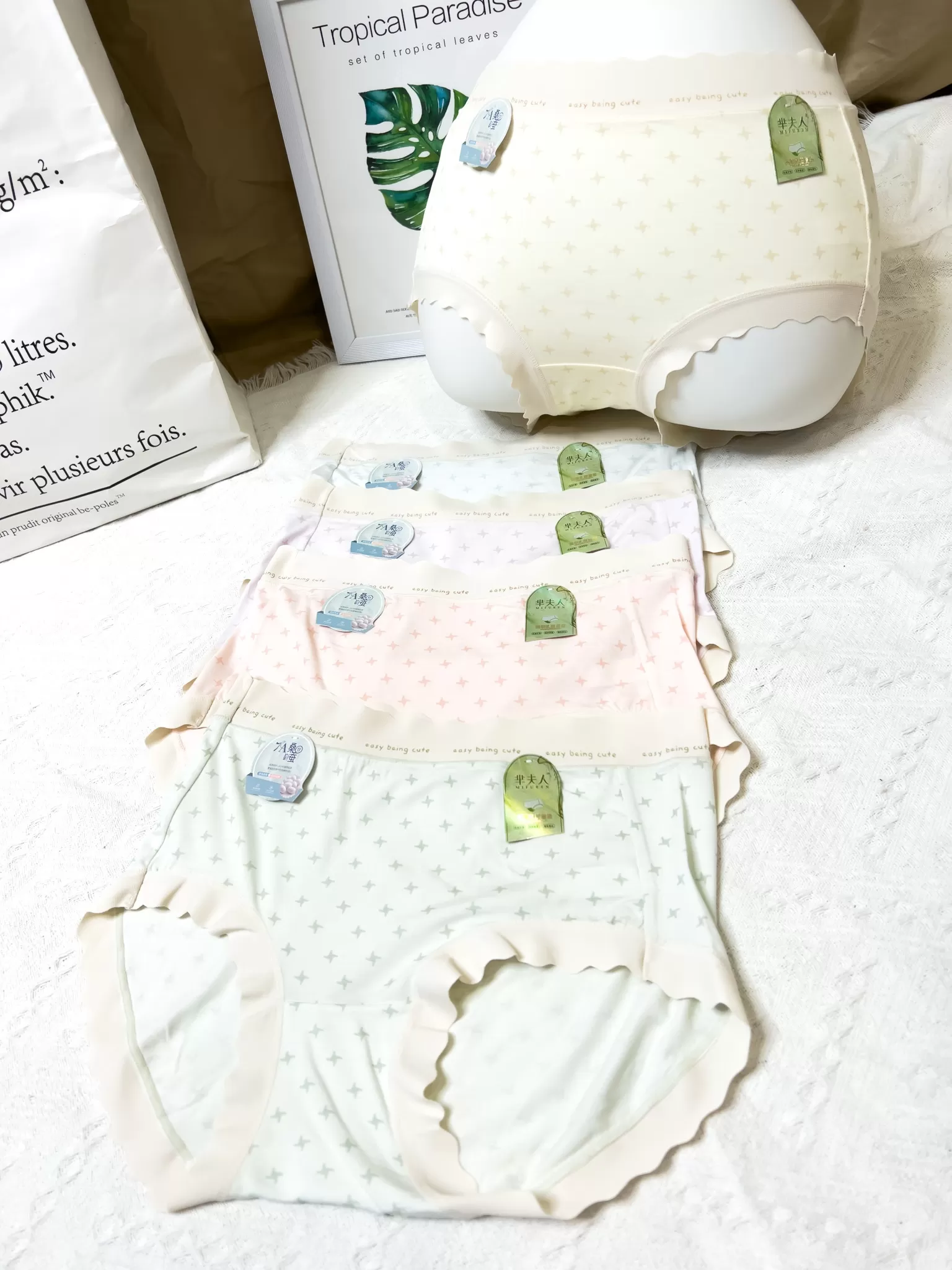 莫代爾|7A抗菌桑蠶絲|花邊千鳥紋|冰絲涼感內褲 (5色)45~75KG