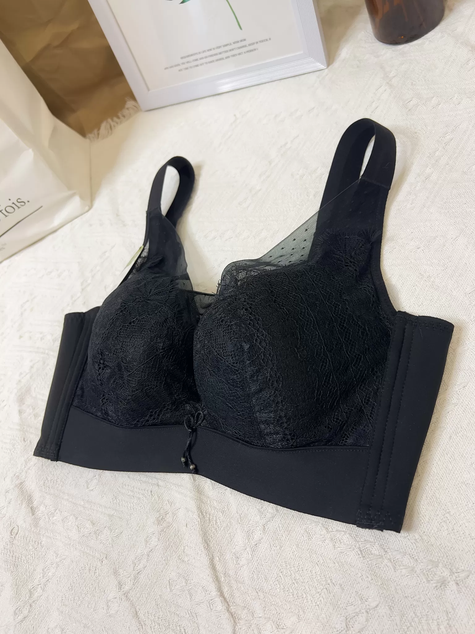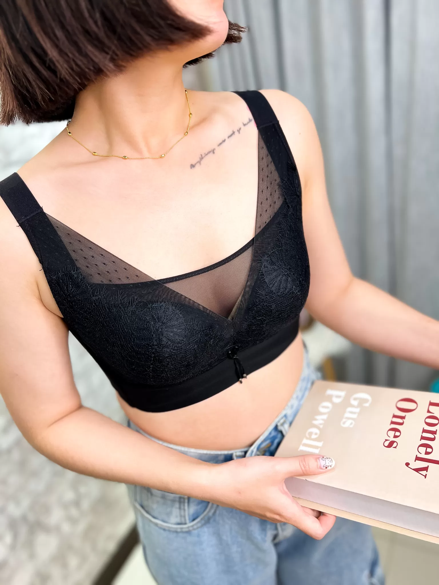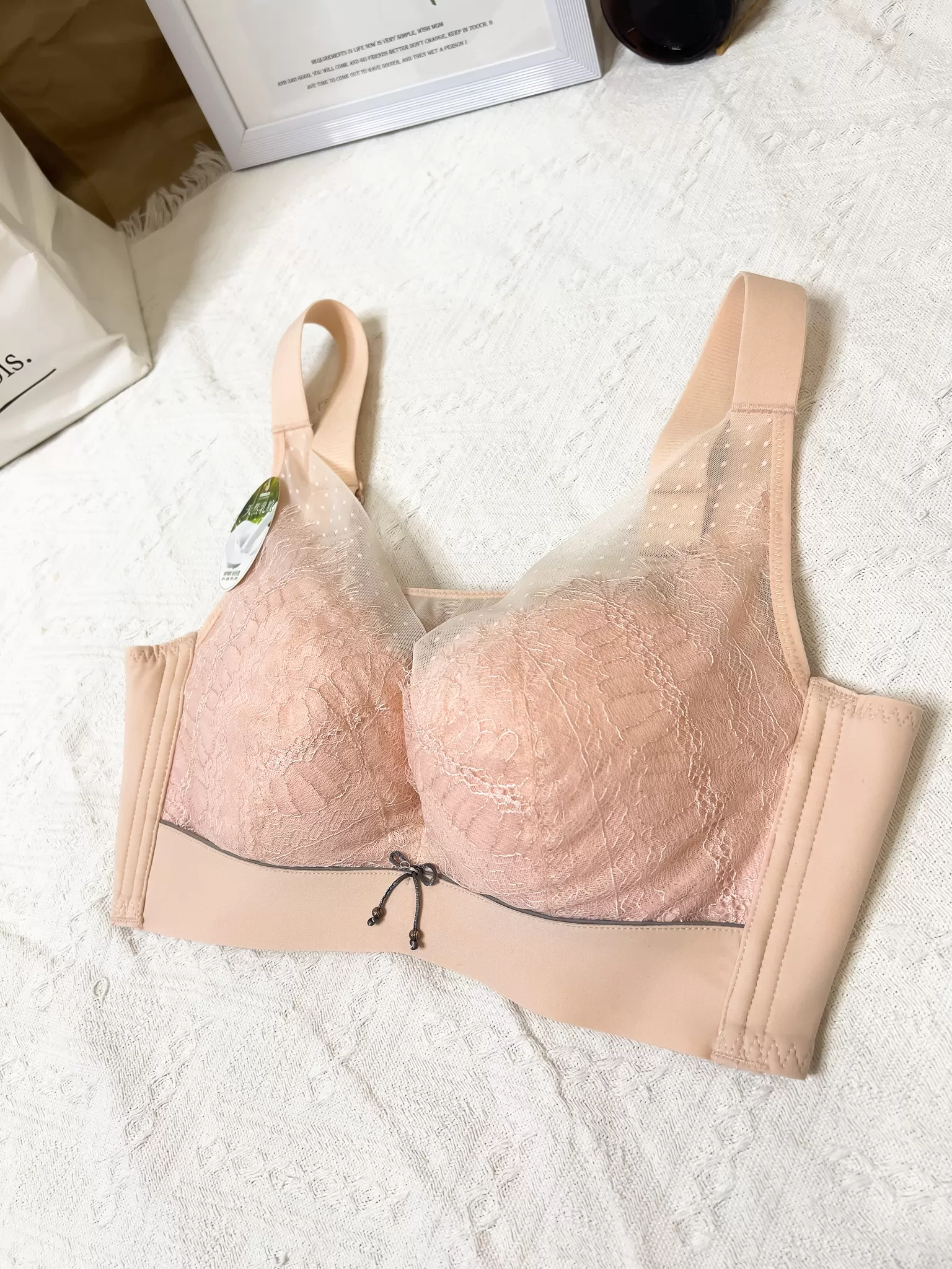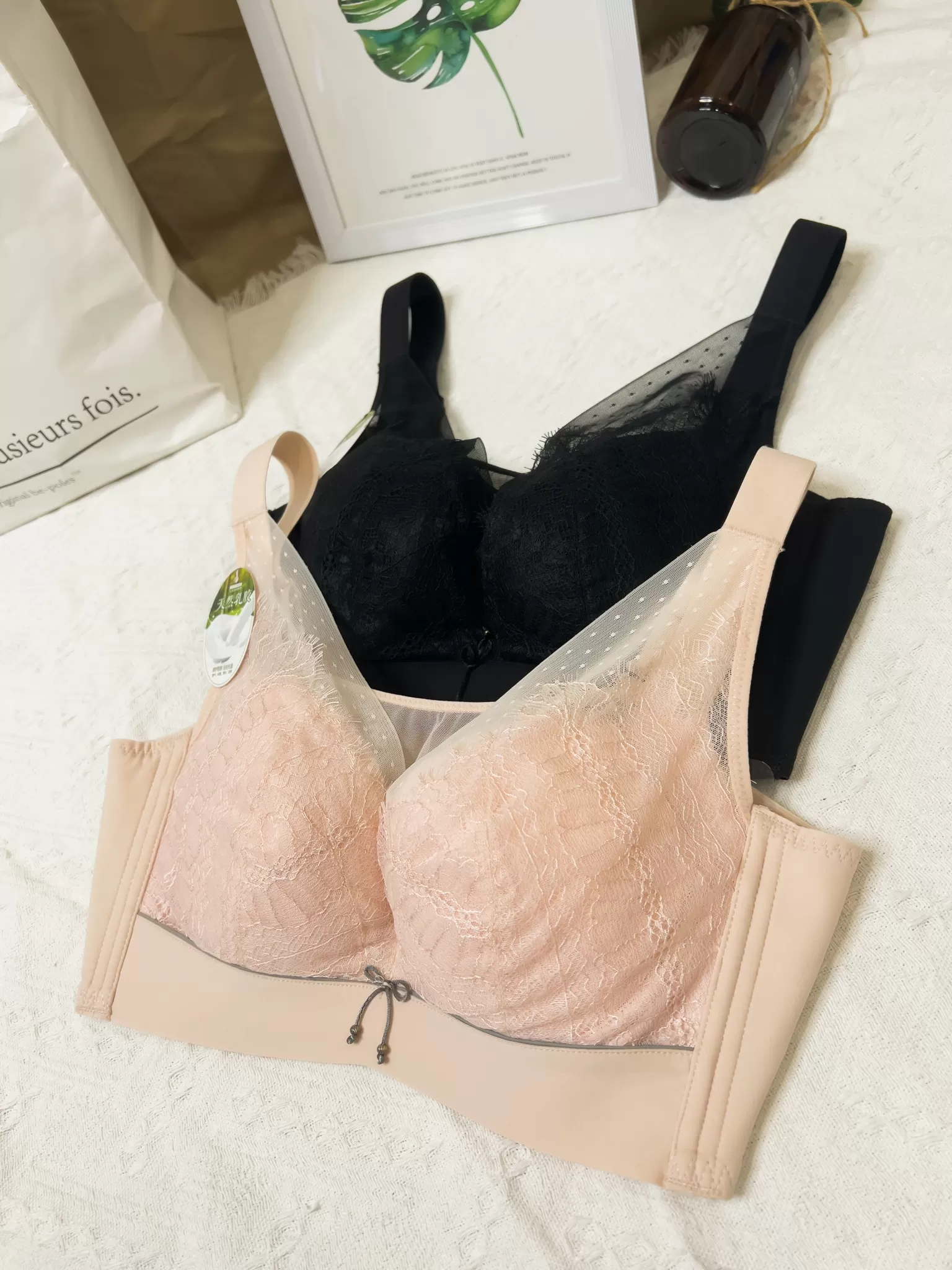 大胸專屬|睫毛蕾絲|薄紗輕透|蝴蝶結|無鋼圈清透內衣(2色)