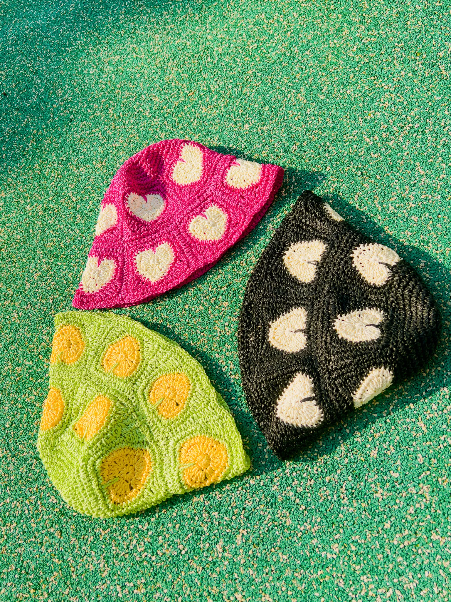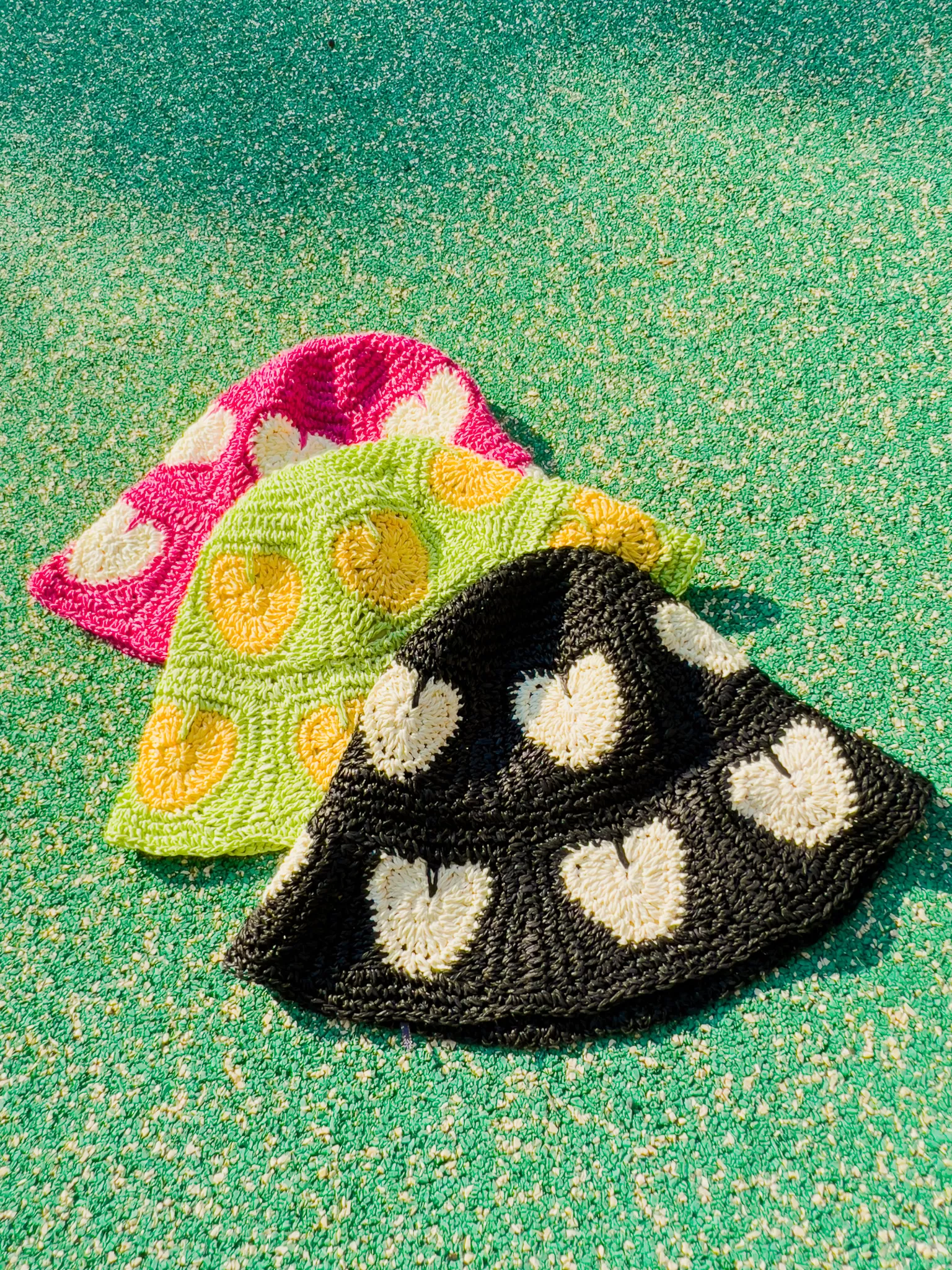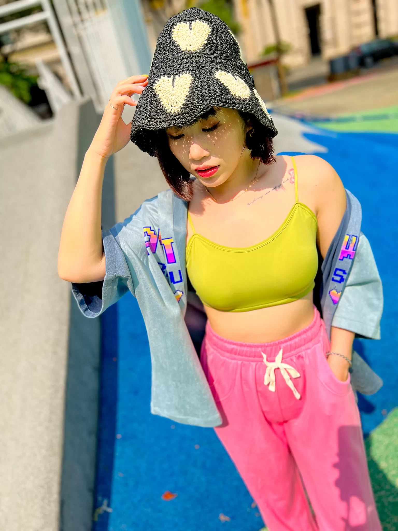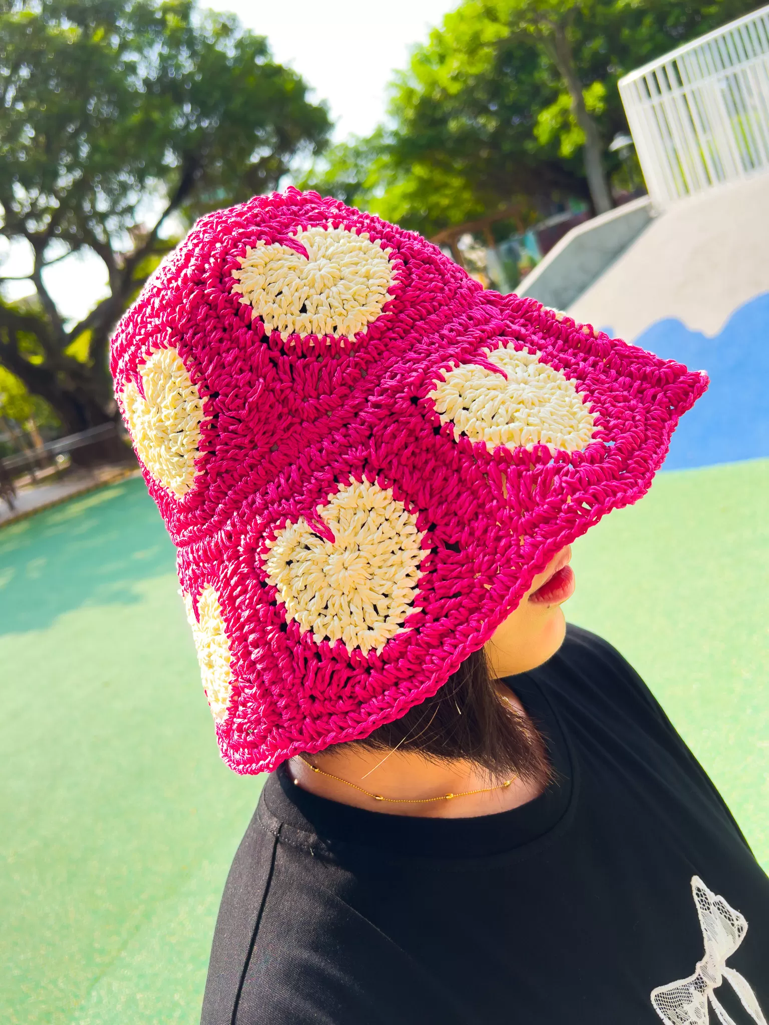日系撞色愛心 |復古粗編織 |大帽簷草帽(3色)