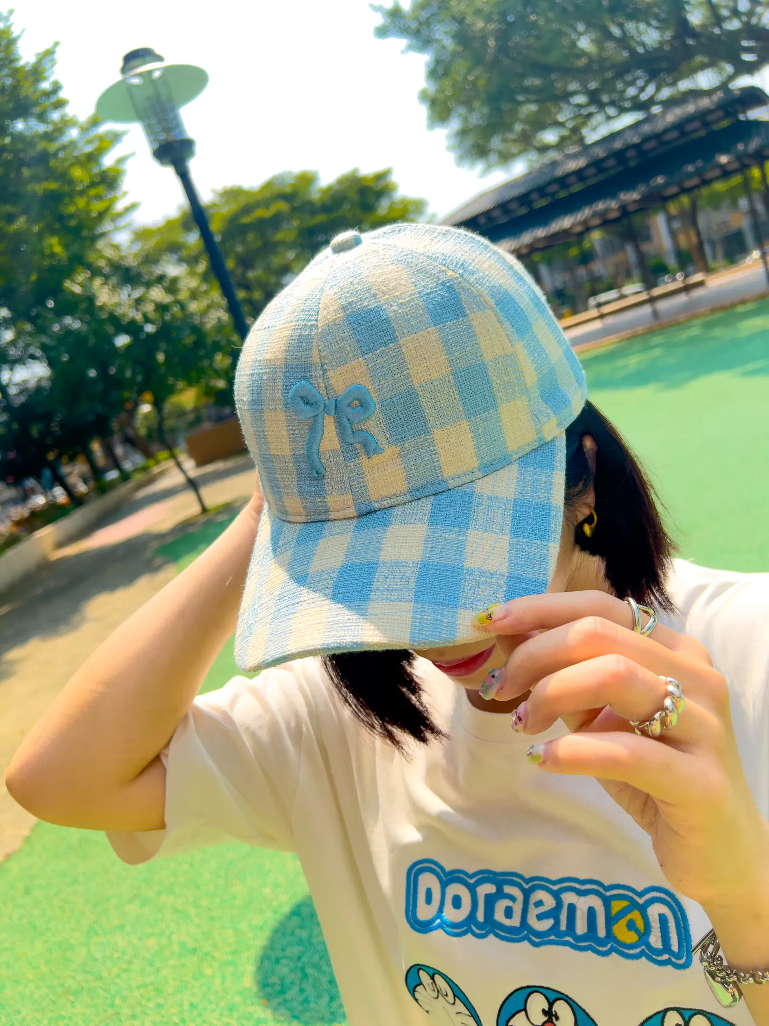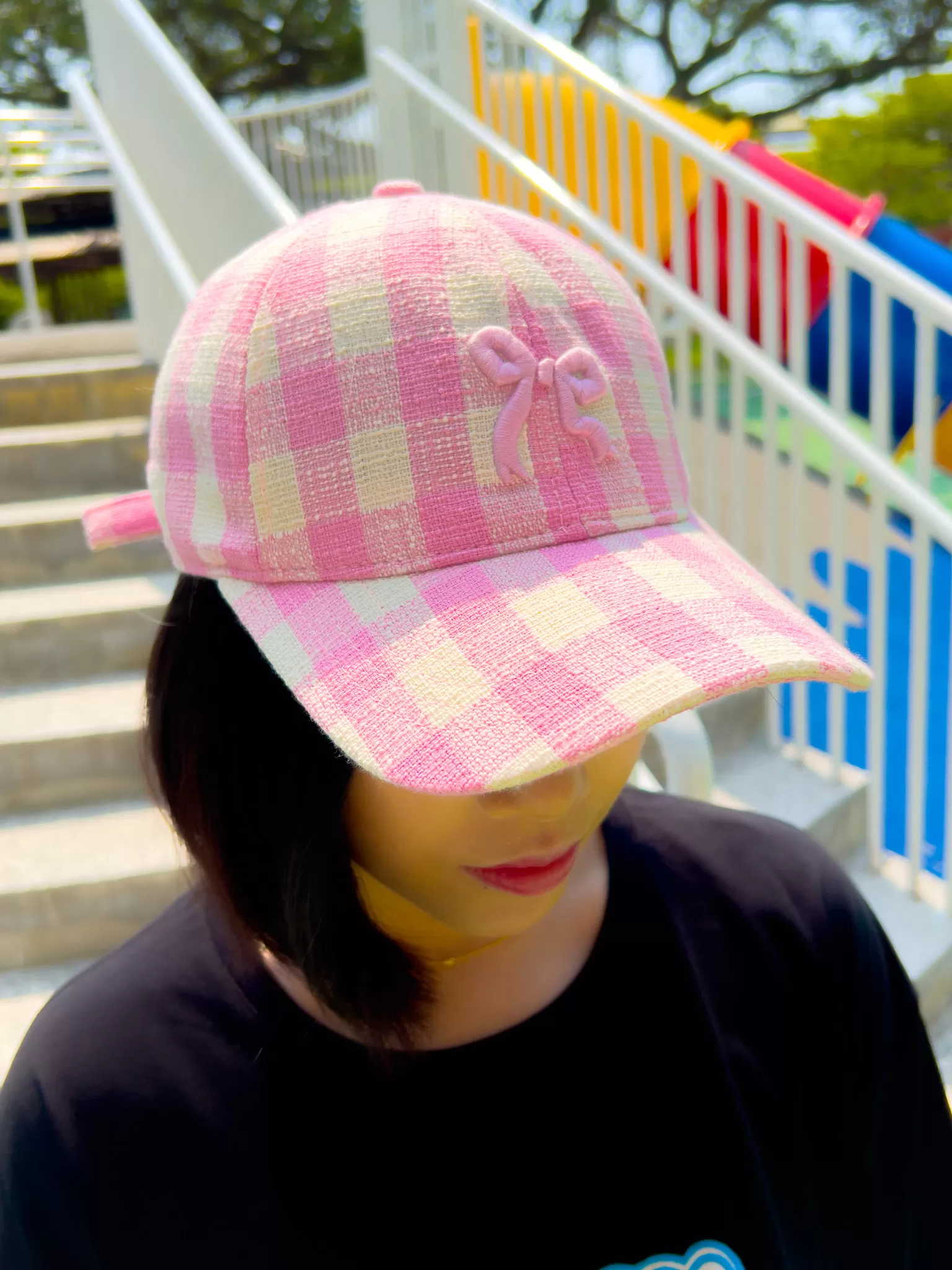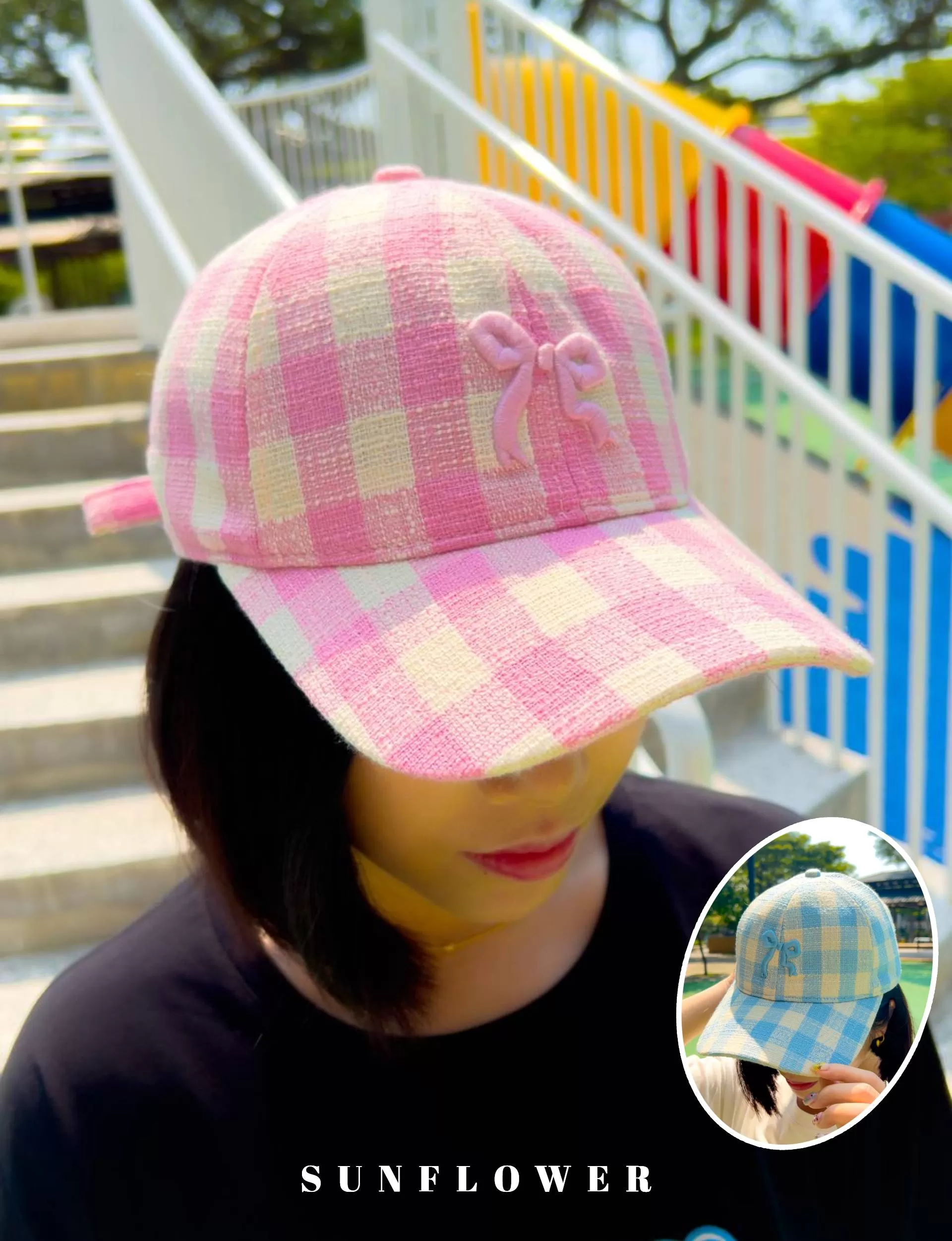 小香風|格紋|立體刺繡蝴蝶結 |棒球鴨舌帽(2色)
