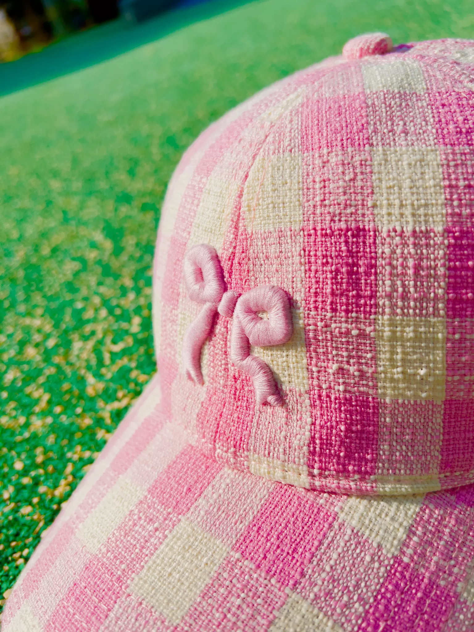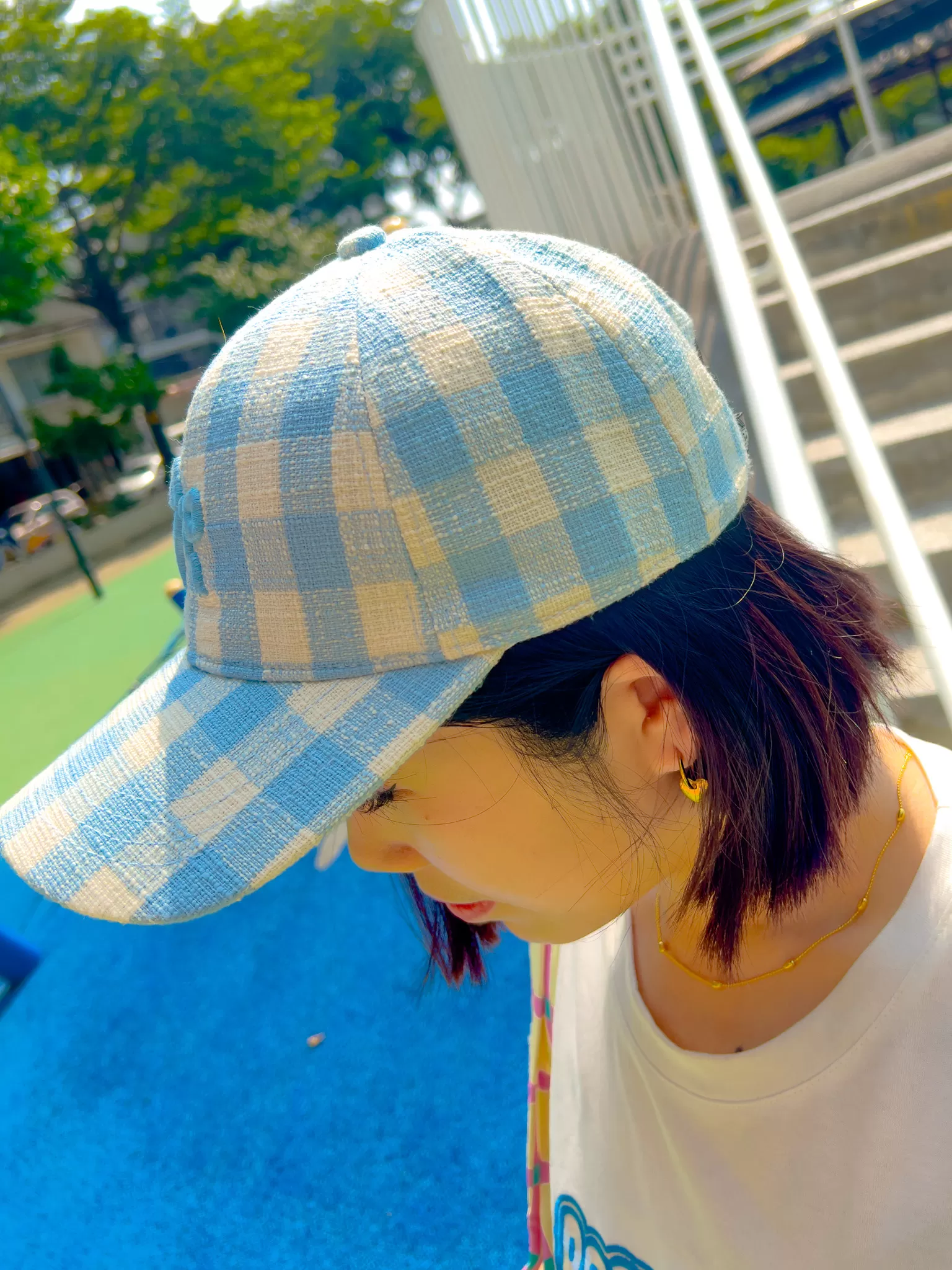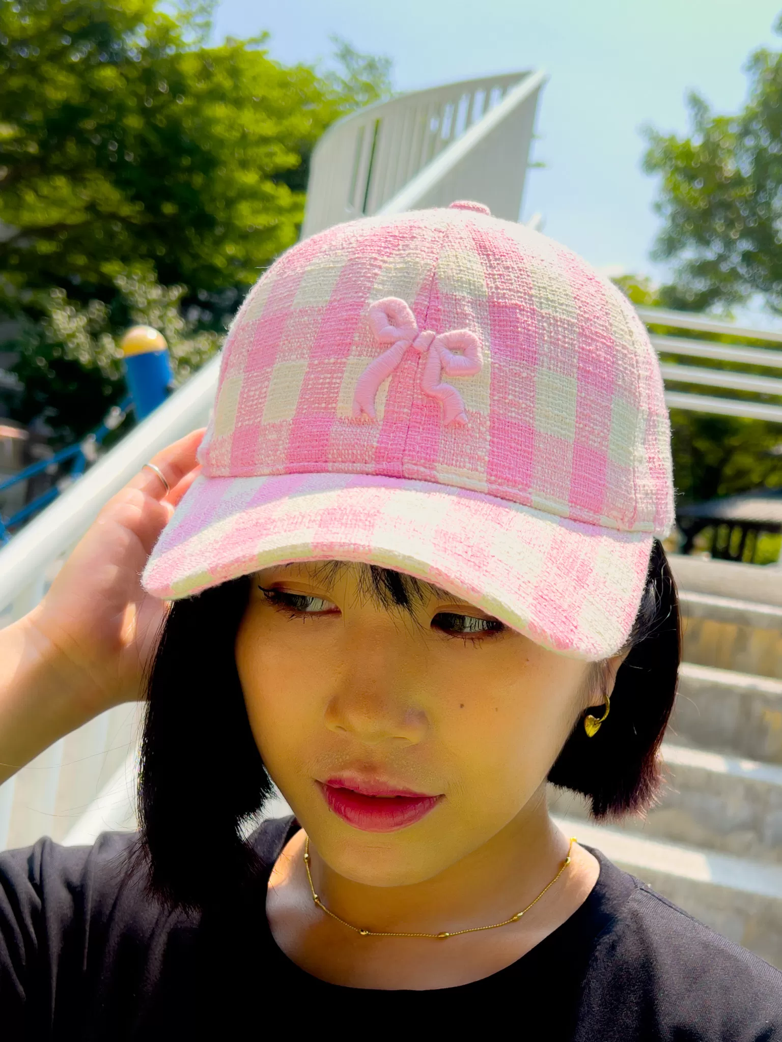 小香風|格紋|立體刺繡蝴蝶結 |棒球鴨舌帽(2色)