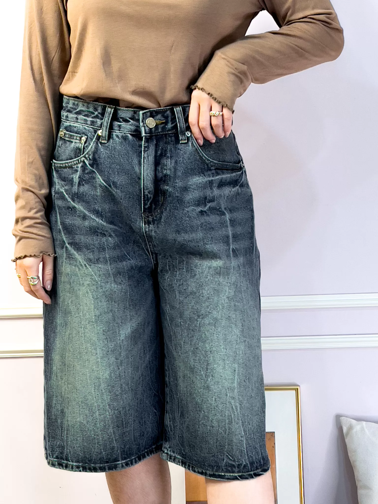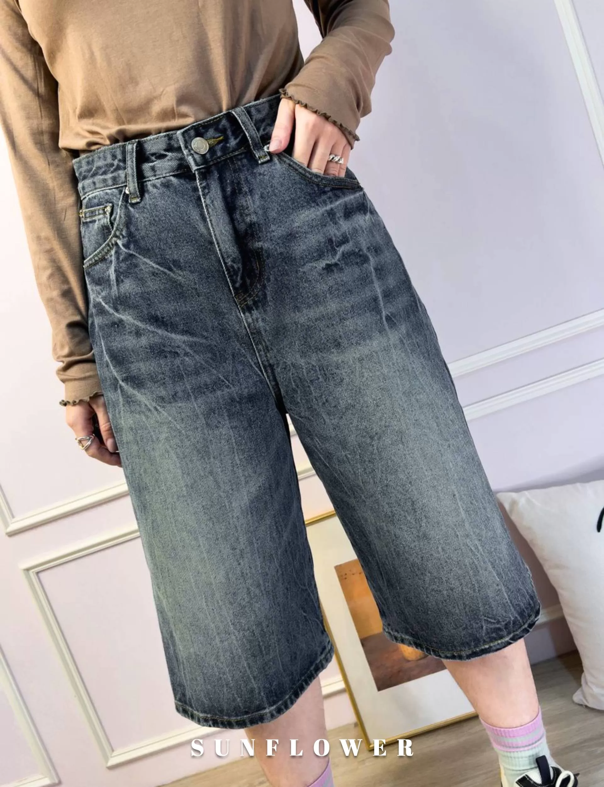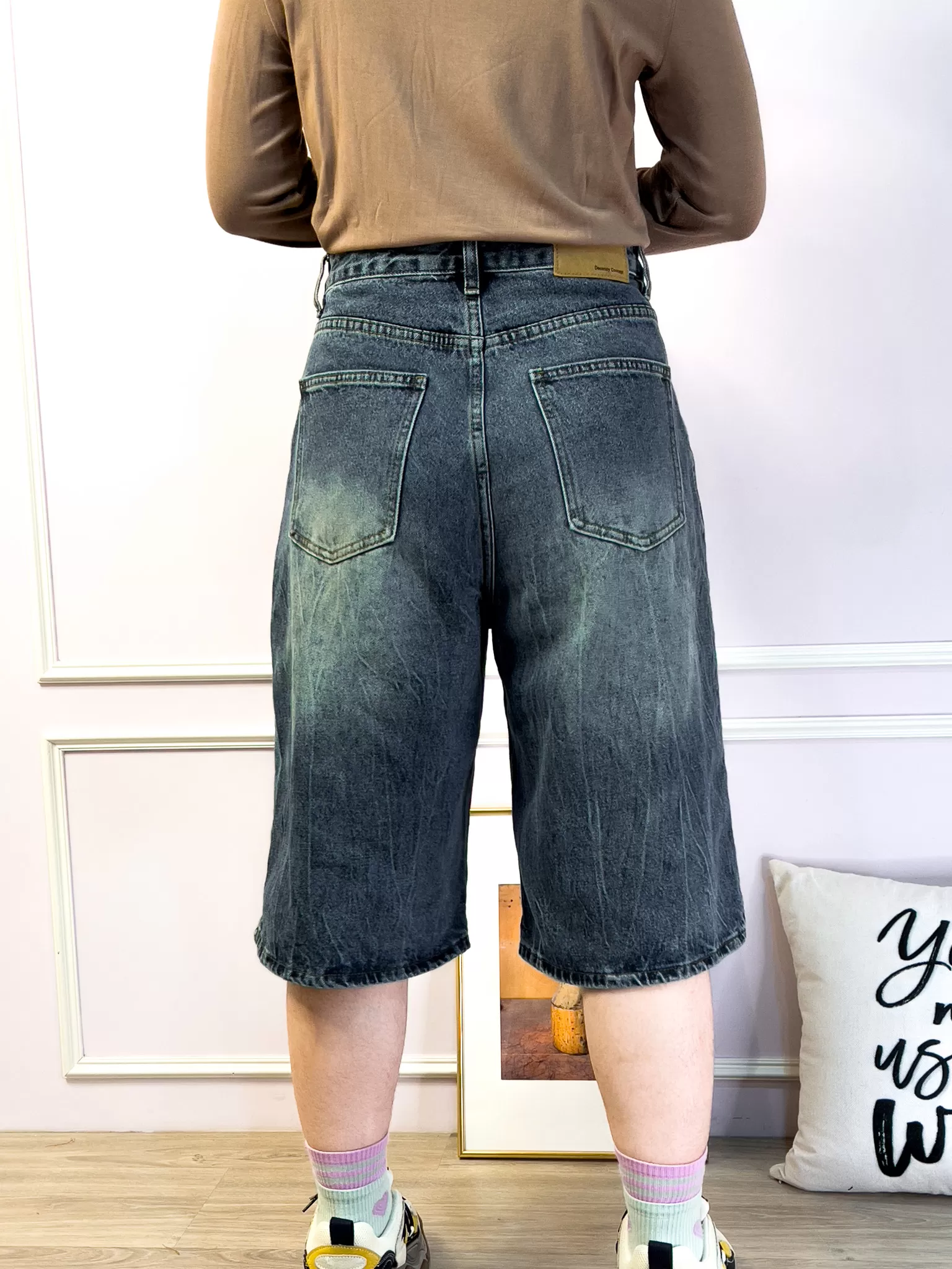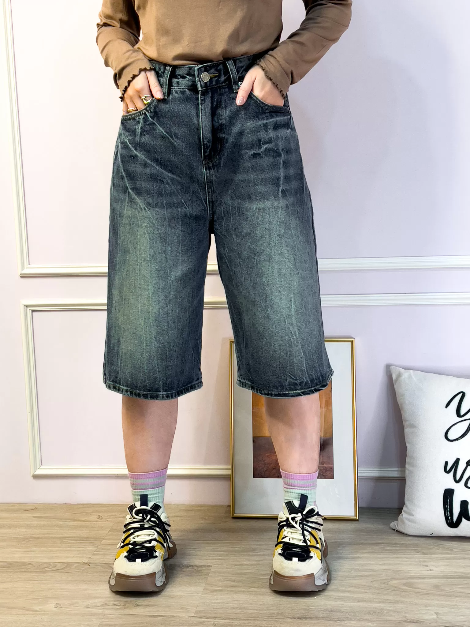 水洗刷舊|丹寧|寬版七分短褲 XS-XXL