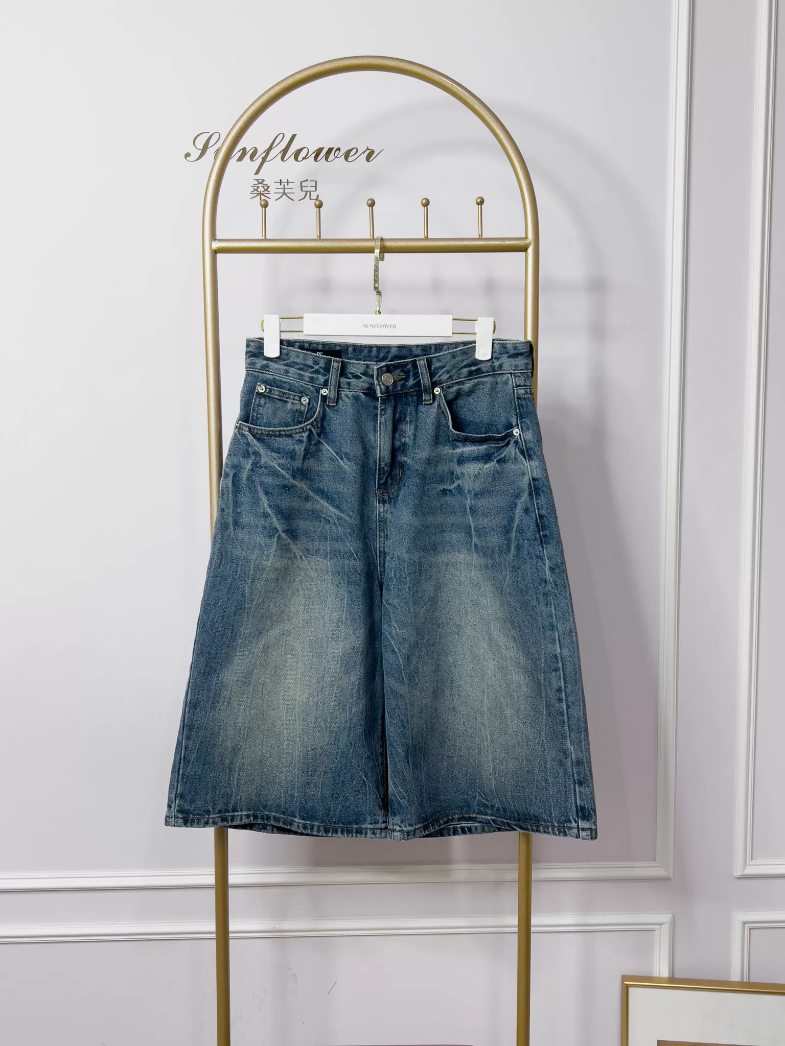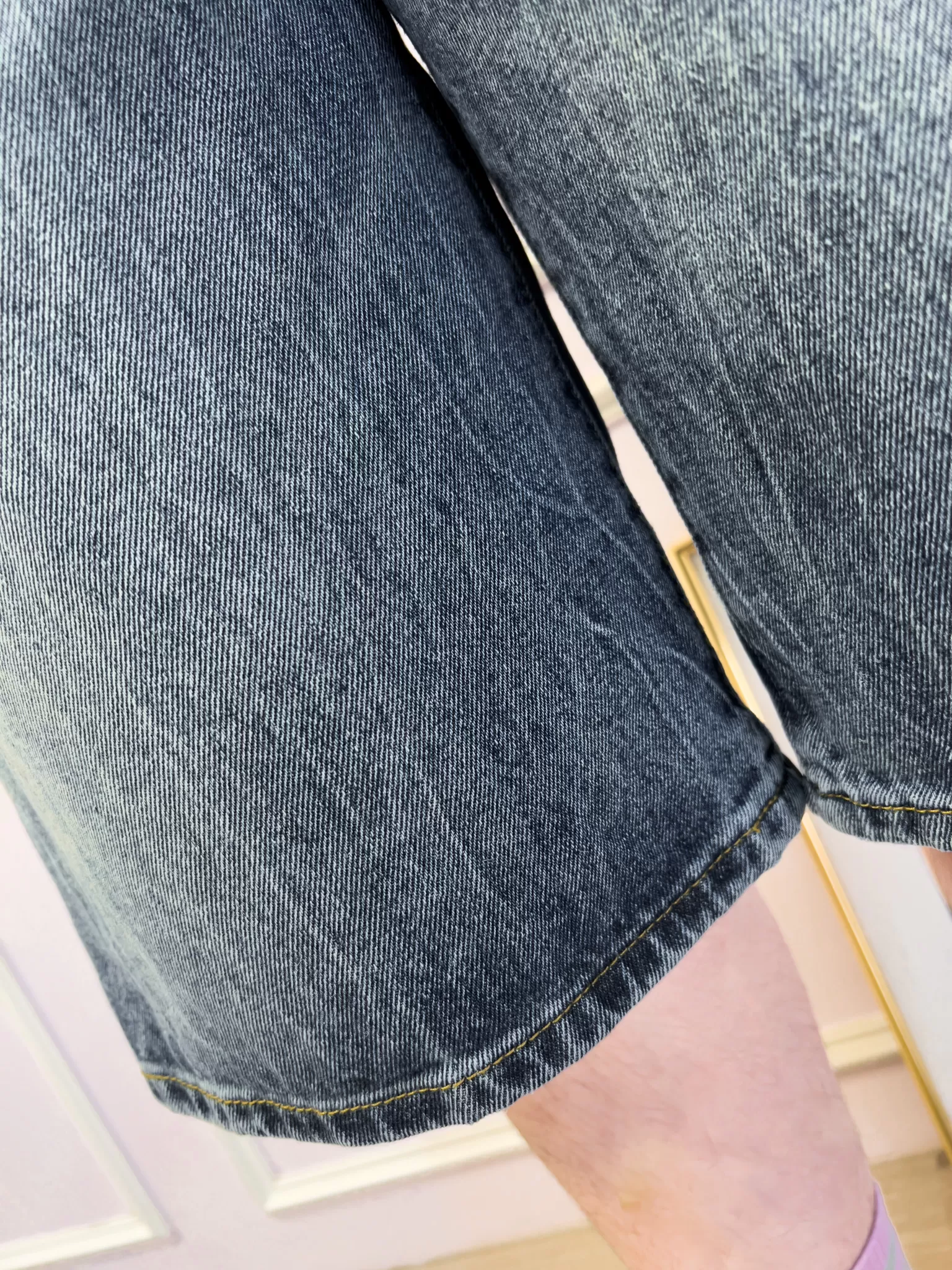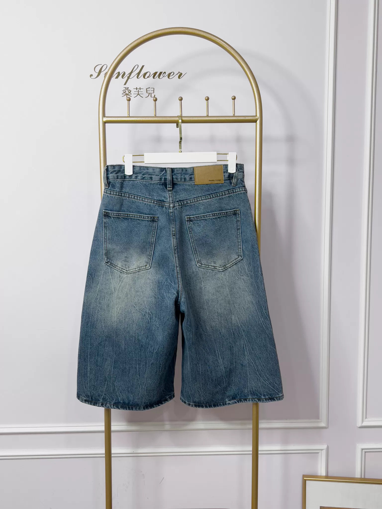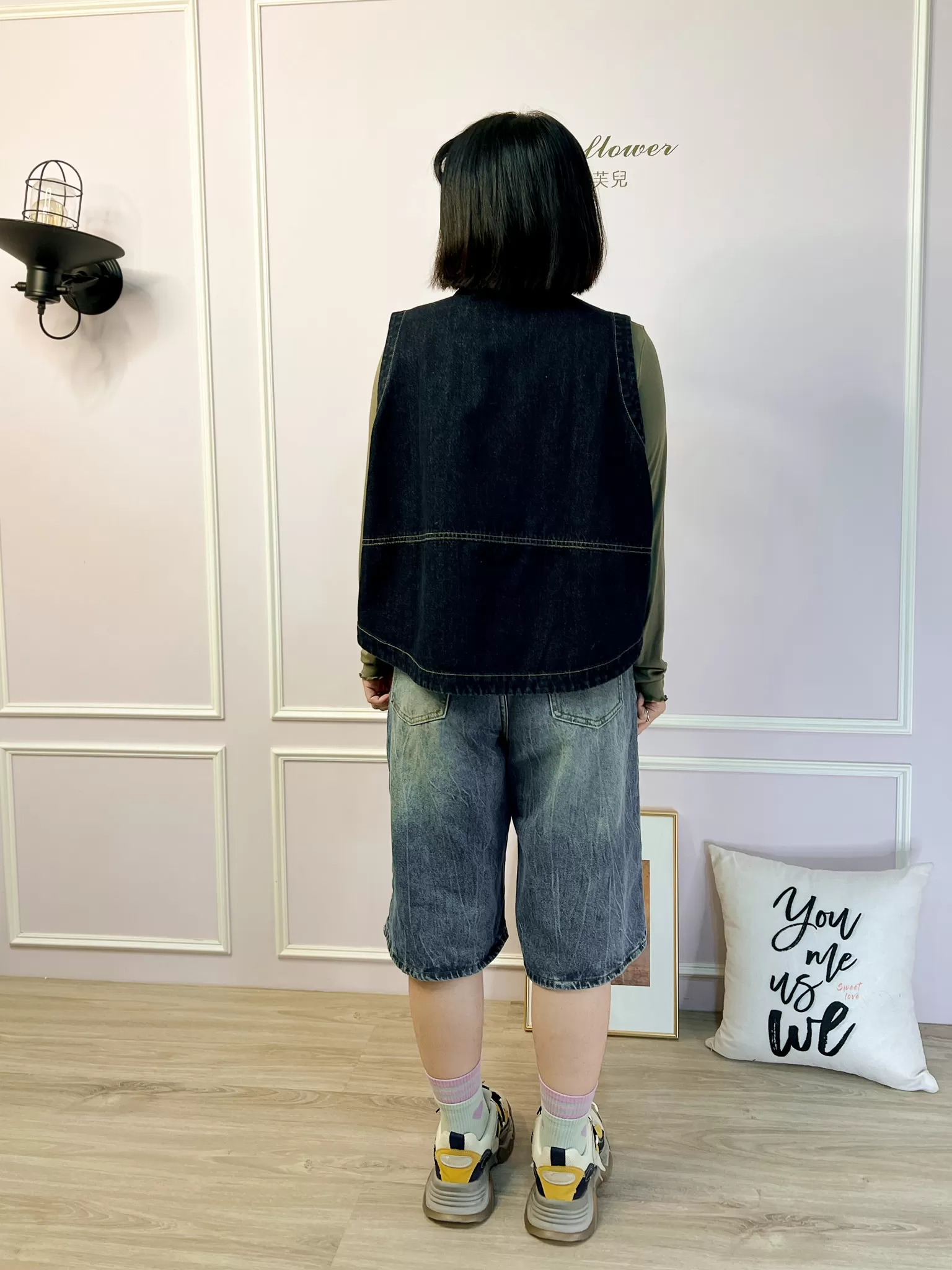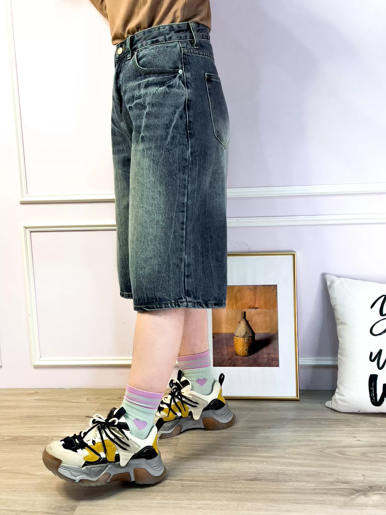 水洗刷舊|丹寧|寬版七分短褲 XS-XXL