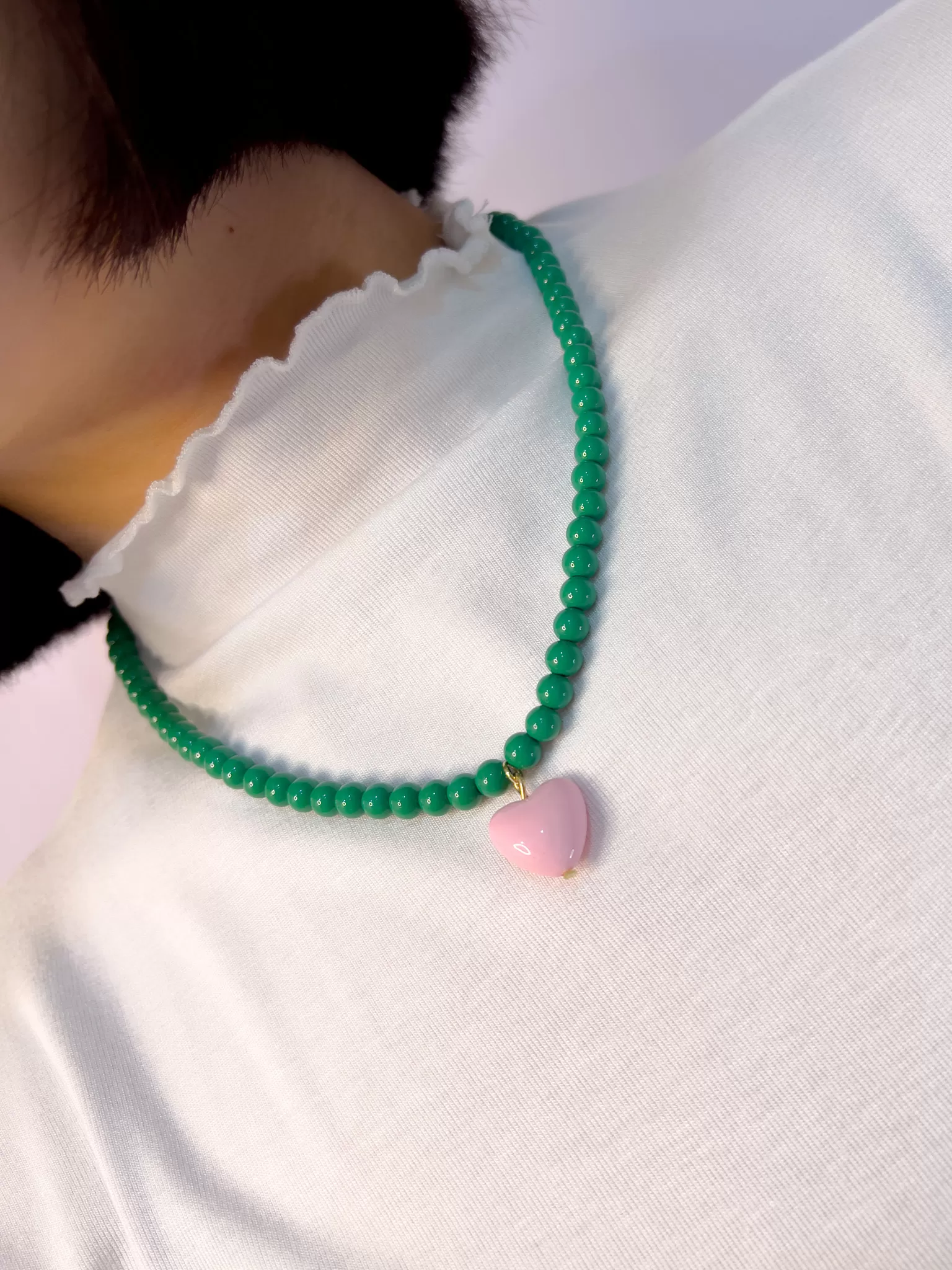 日系少女|甜甜串珠珠|立體愛心項鍊(4色)