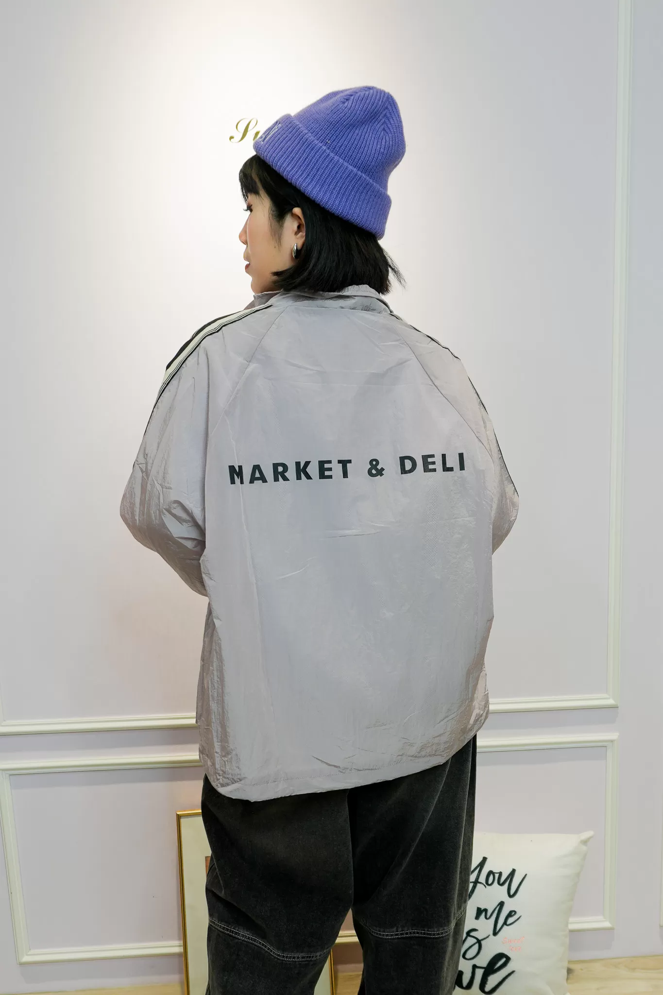 *衣體的自然褶皺舊化設計搭配背後簡約英文字母,讓古著感自然產生