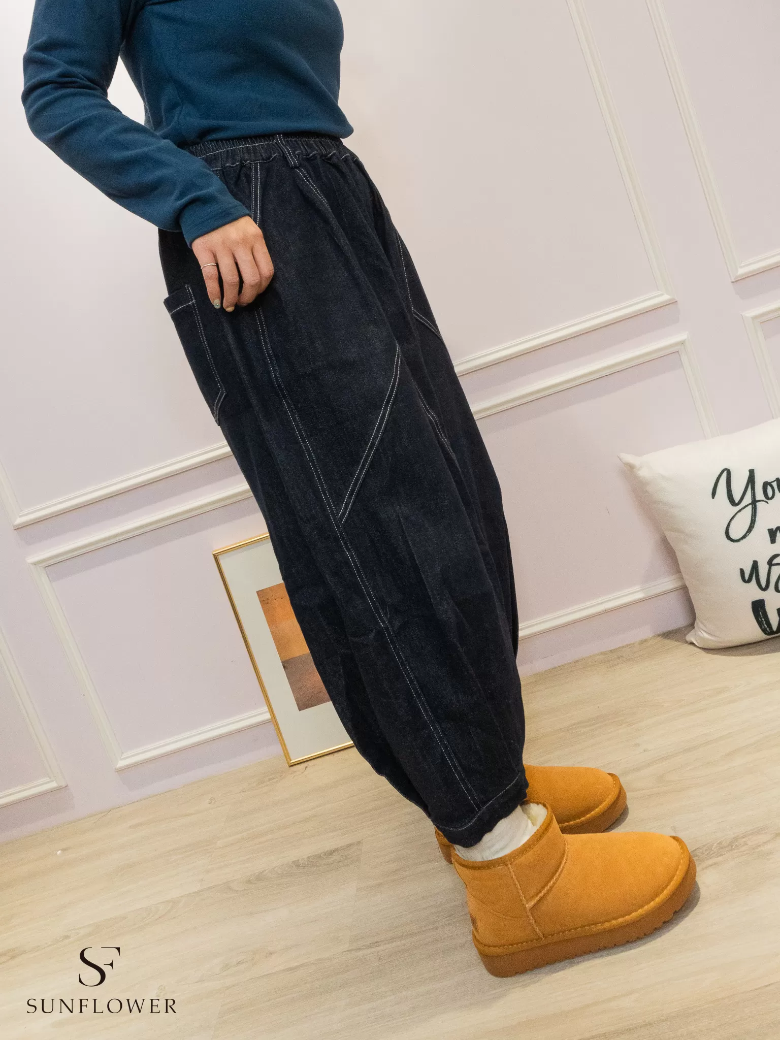小男孩|褶皺線條|彈性丹寧|燈籠褲