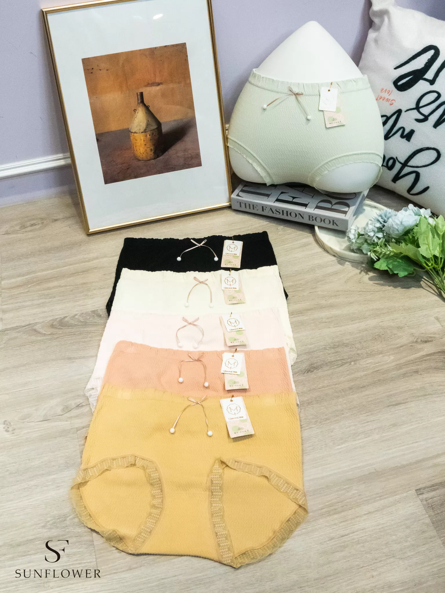緞帶小棉球|莫代爾泡泡棉|桑蠶絲抗菌|無縫內褲(6色)45KG~75KG