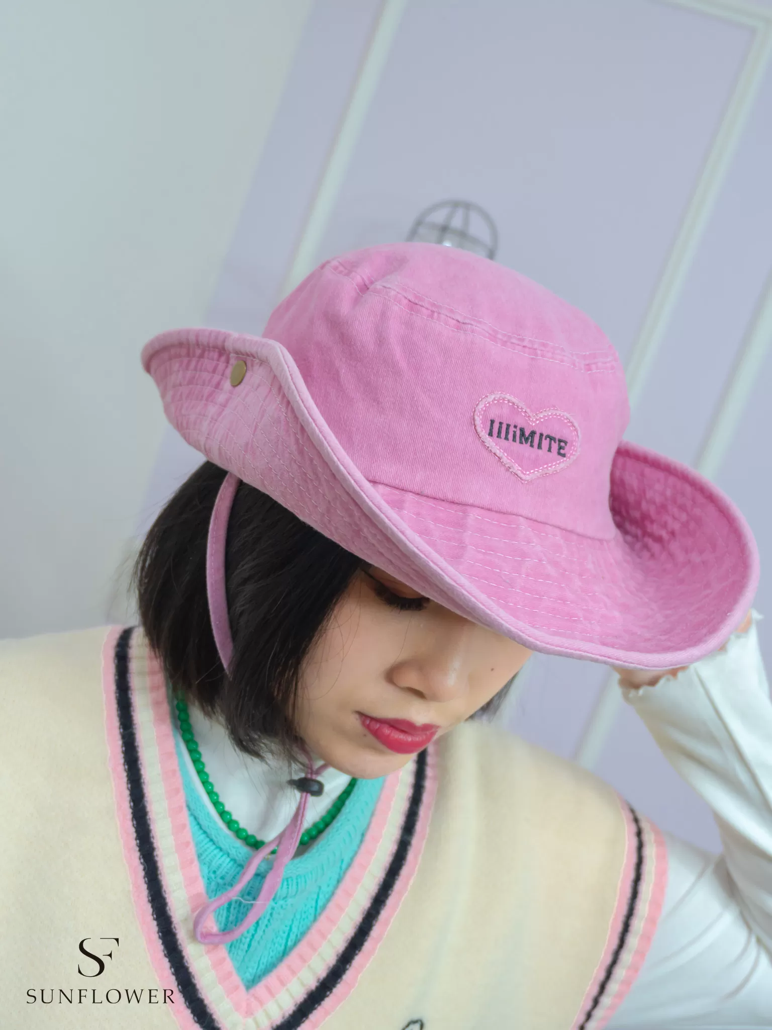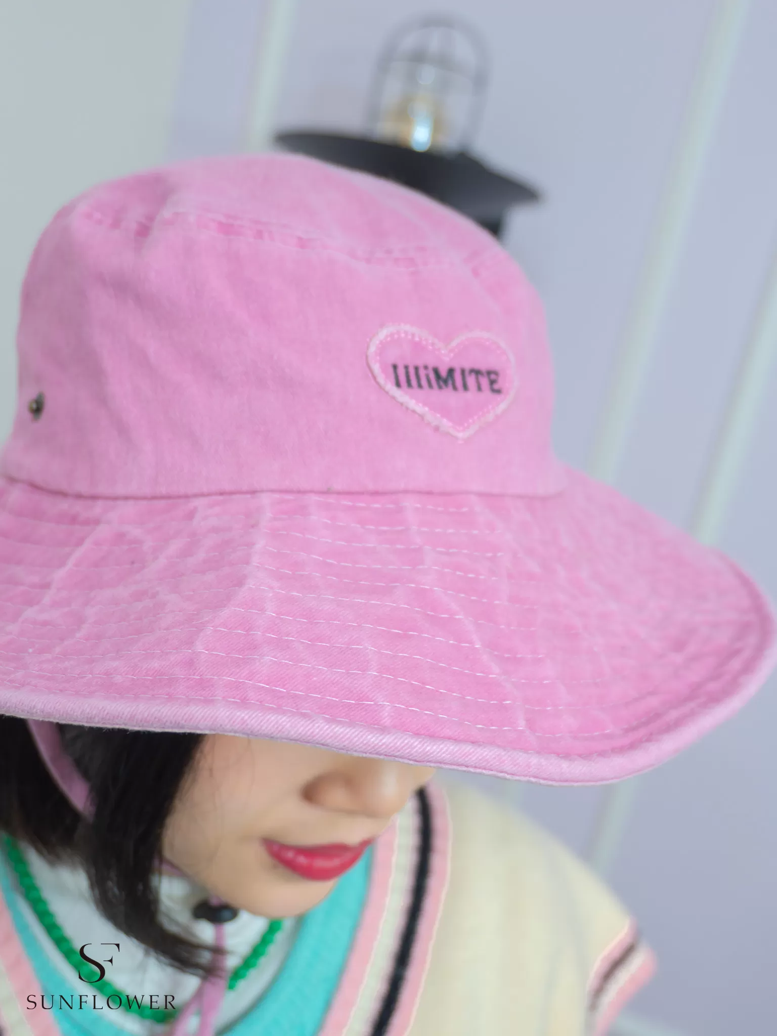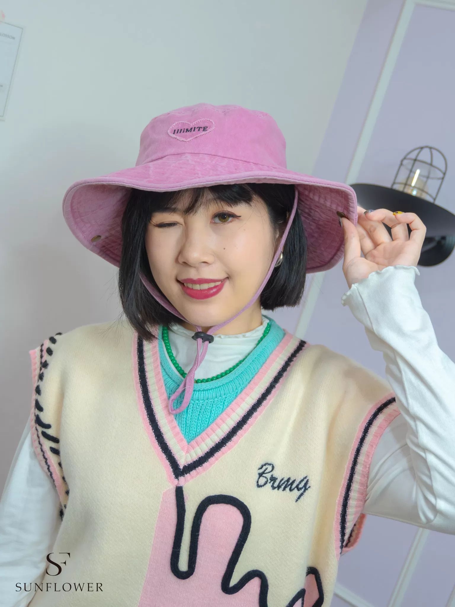 一帽兩戴|粉紅愛心|字母|牛仔漁夫帽(2色)