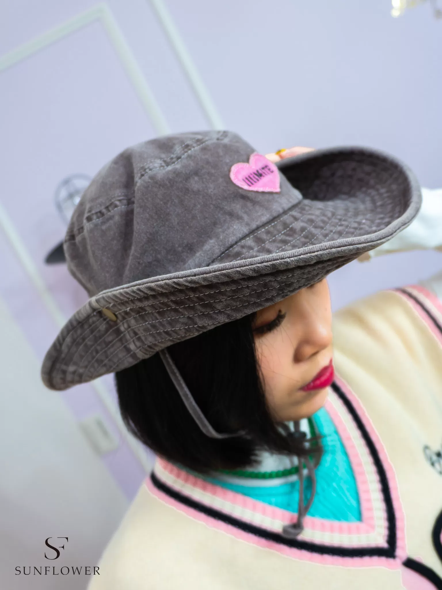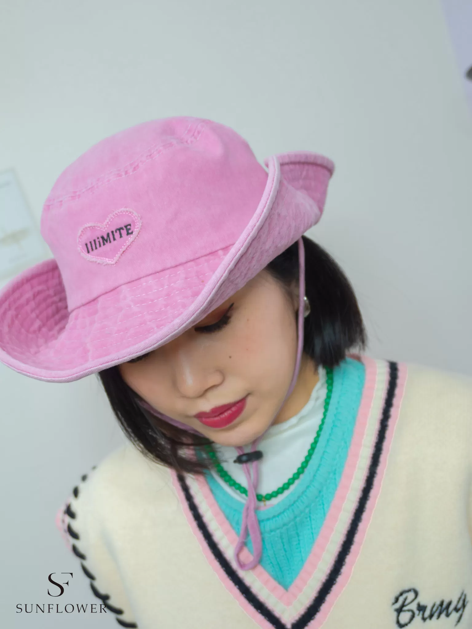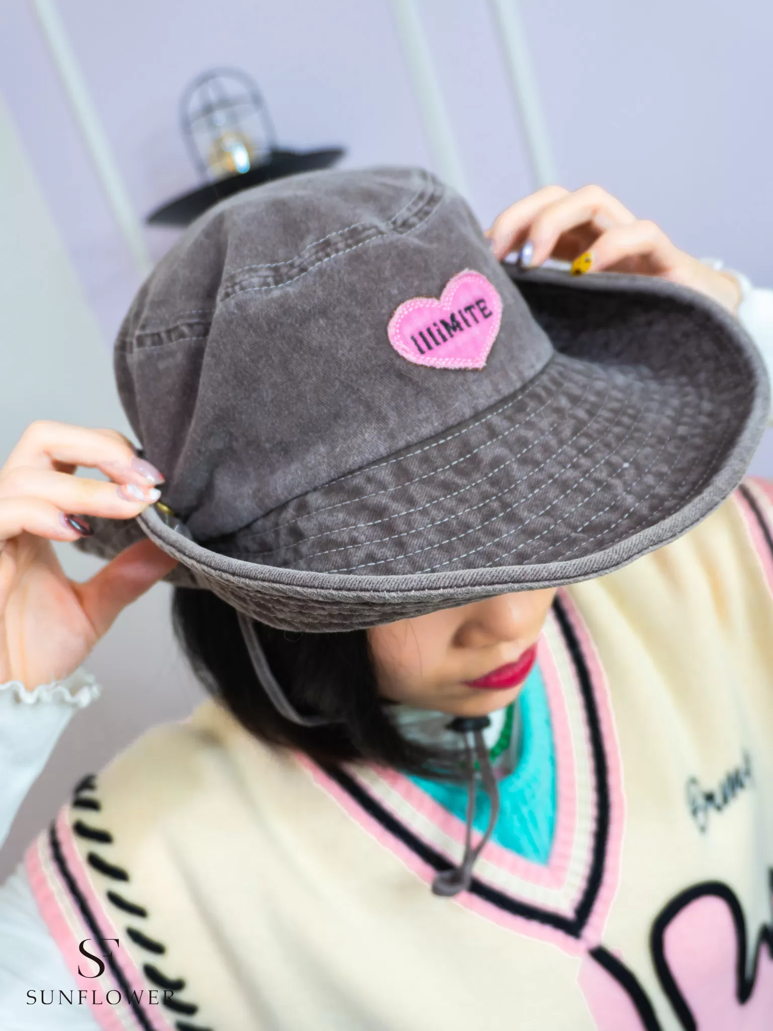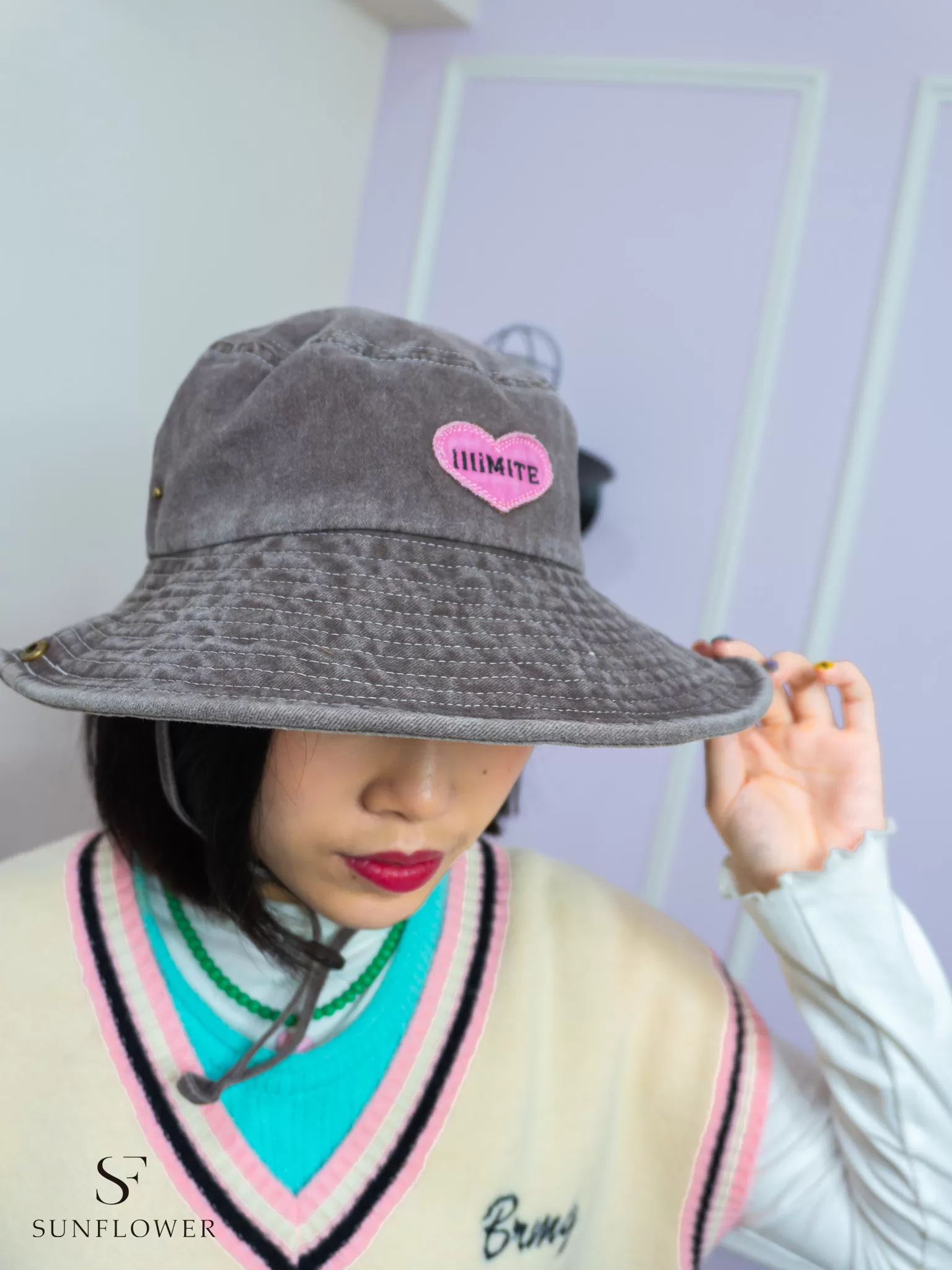 一帽兩戴|粉紅愛心|字母|牛仔漁夫帽(2色)
