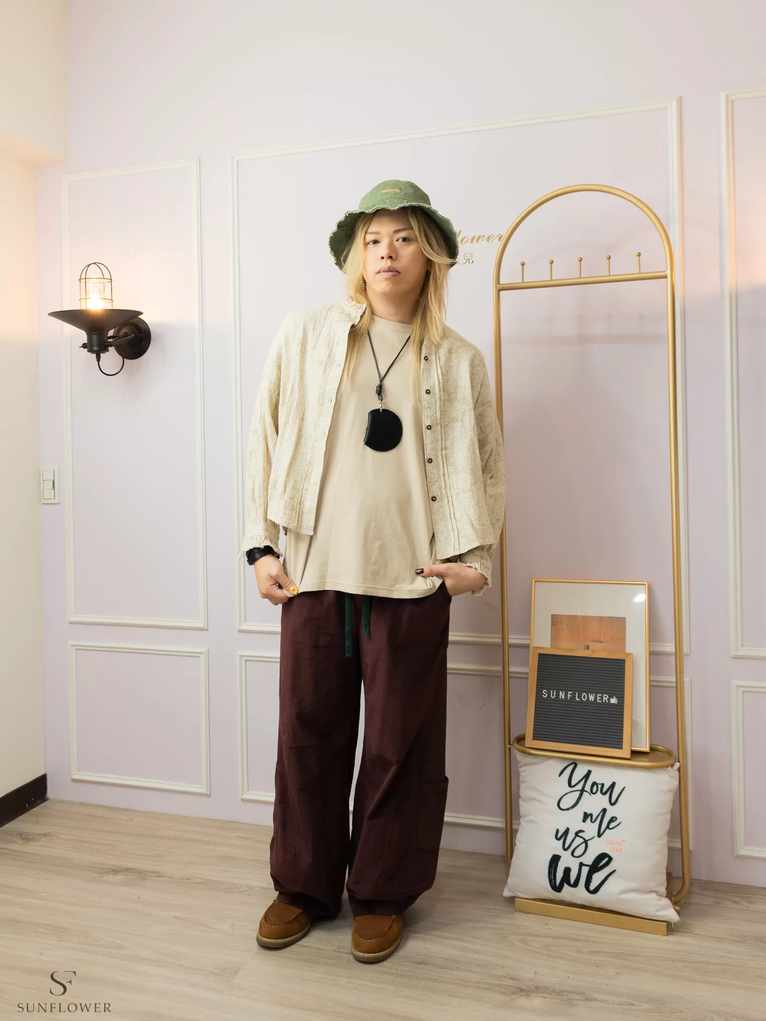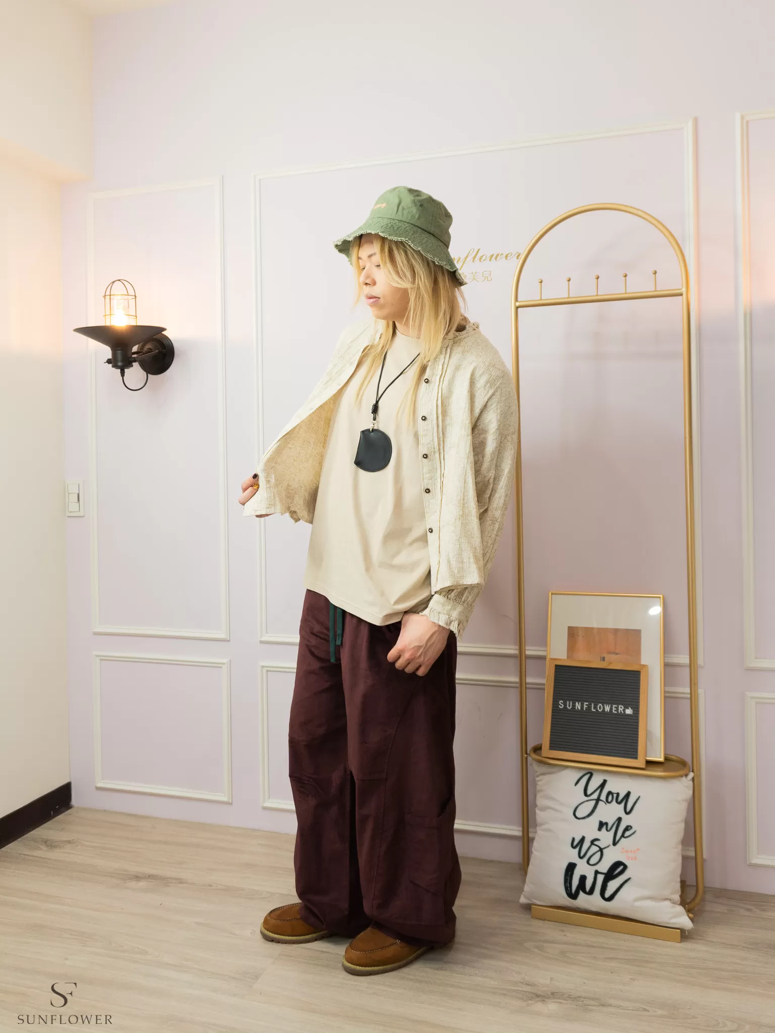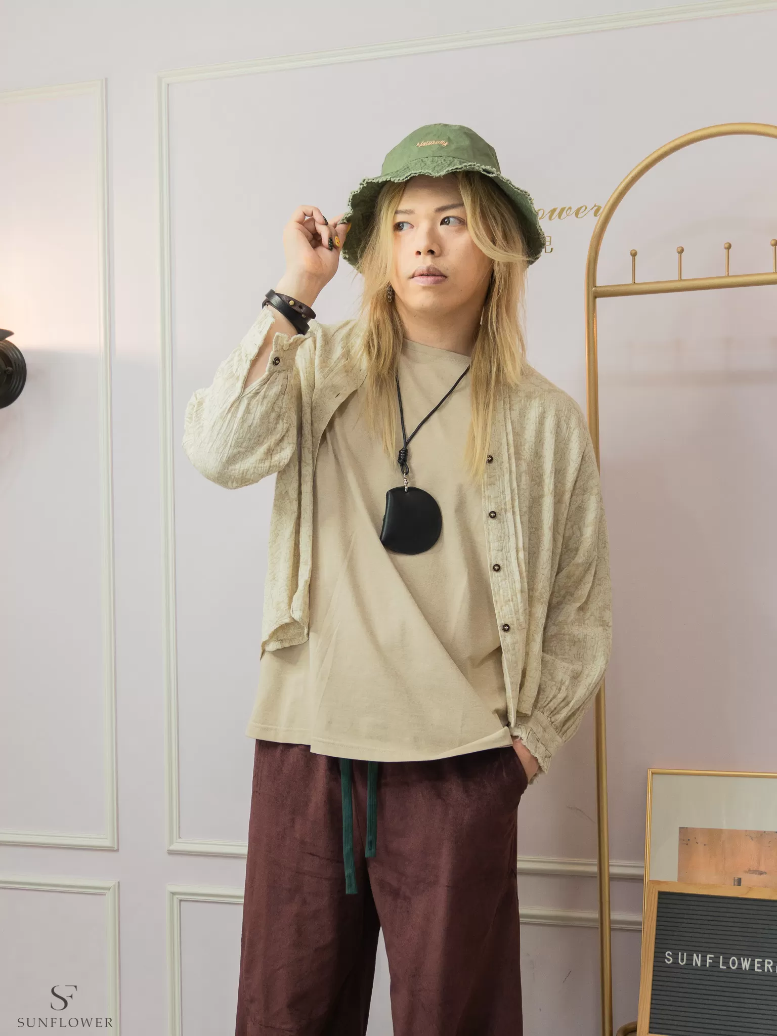 *簡單的素色上衣+單色系褲款搭配漁夫帽,就很有質感