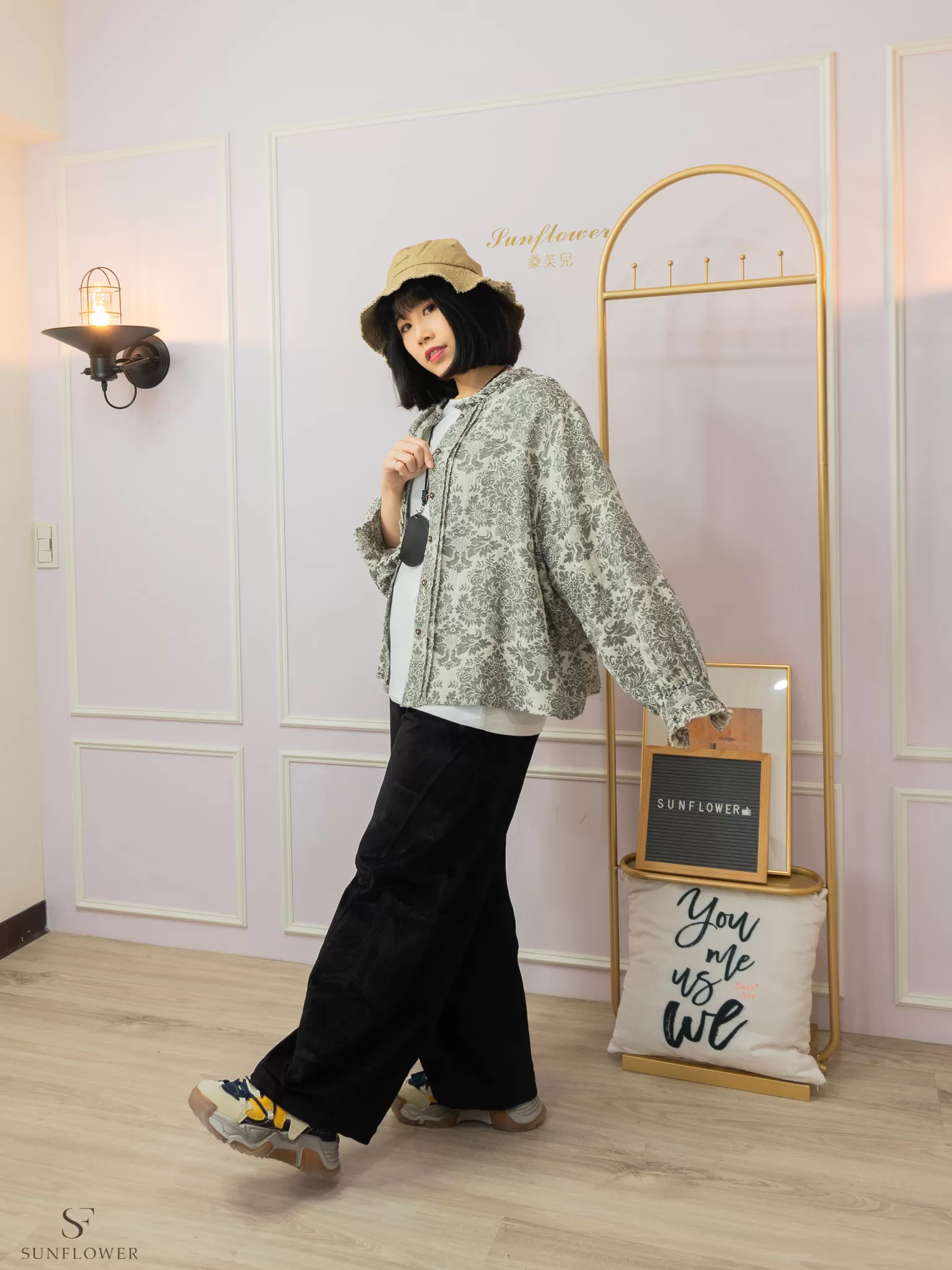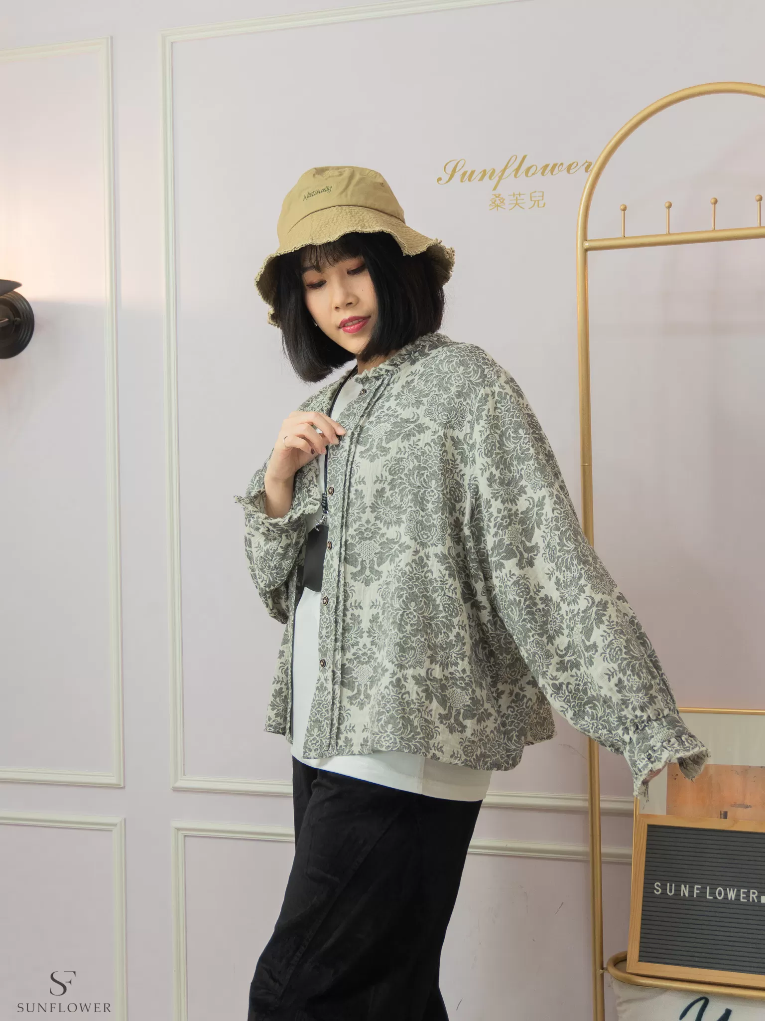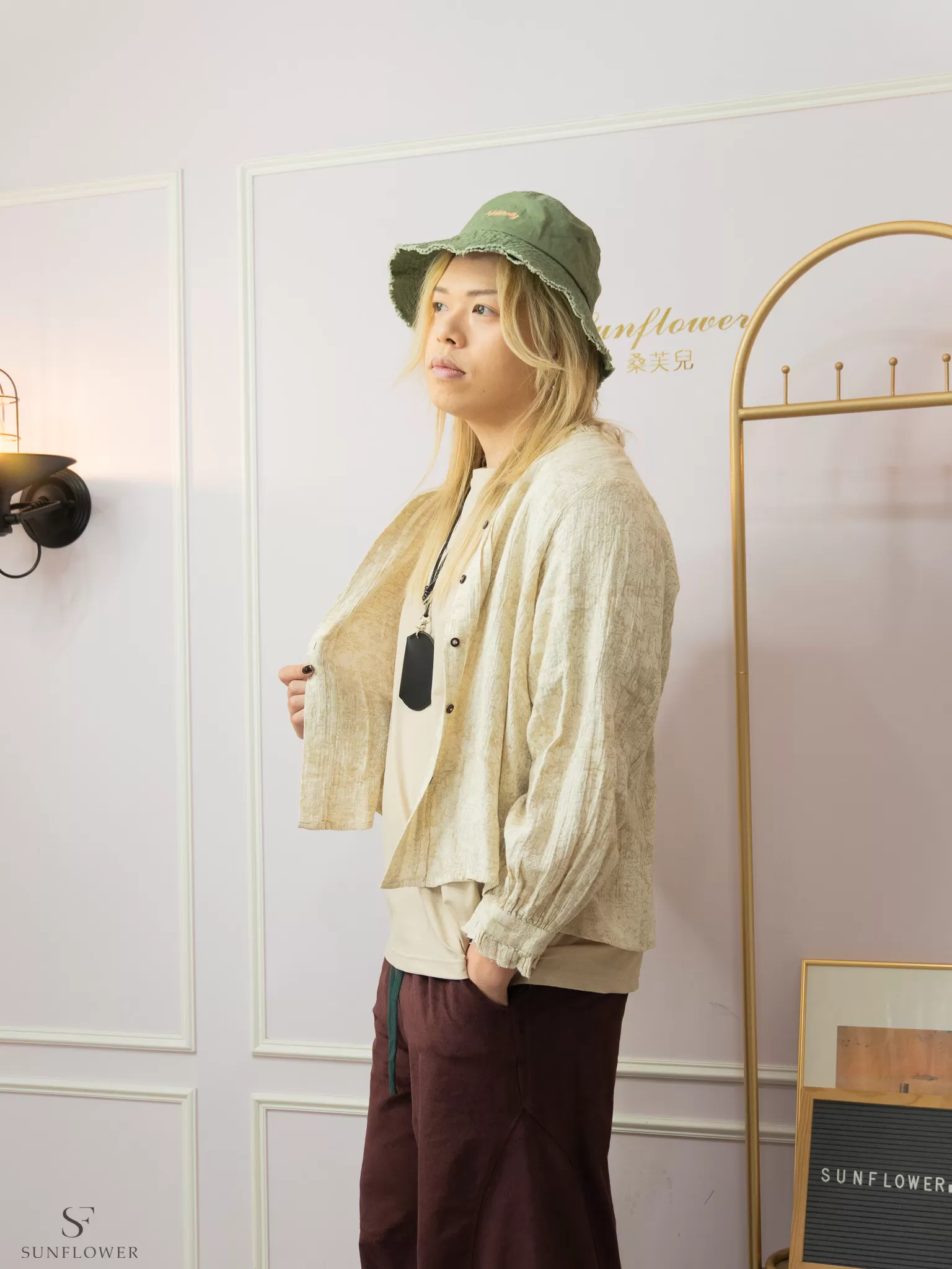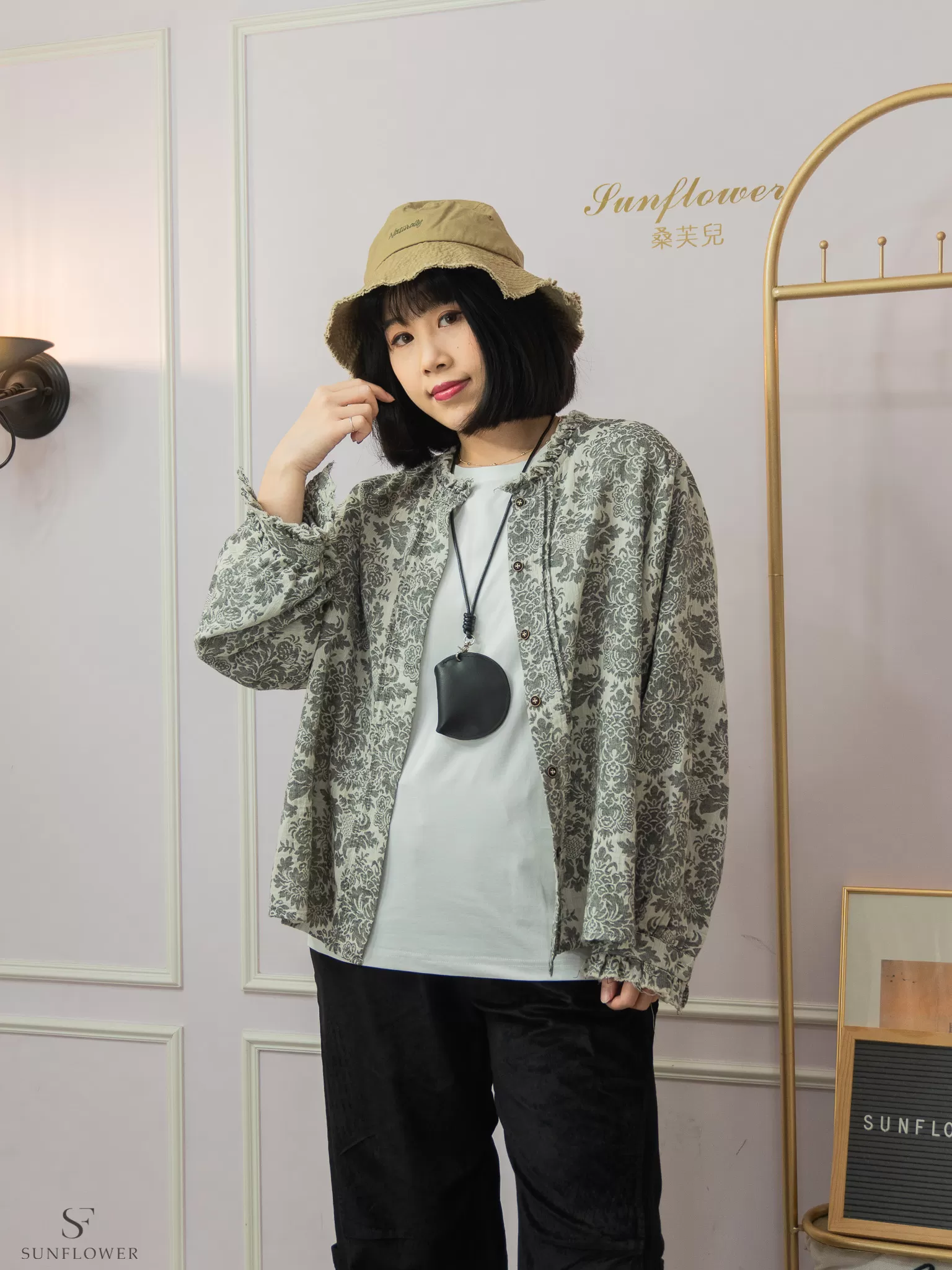 *簡單的素色上衣+單色系褲款搭配漁夫帽,就很有質感