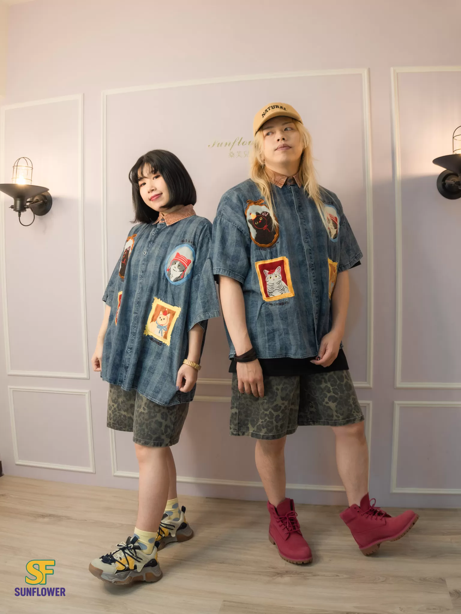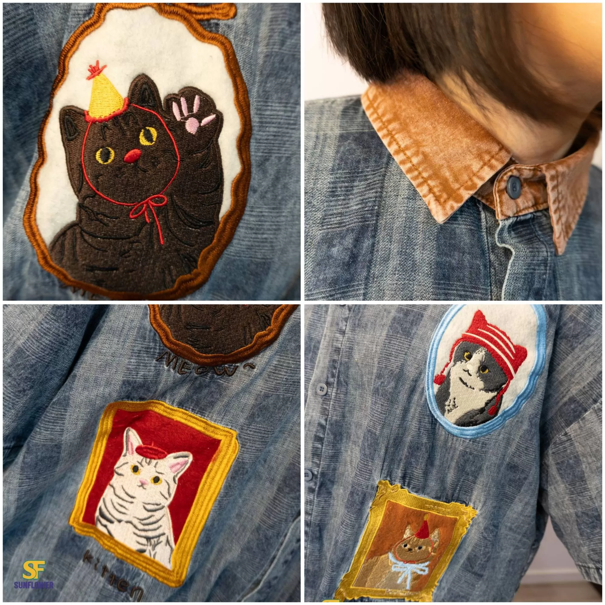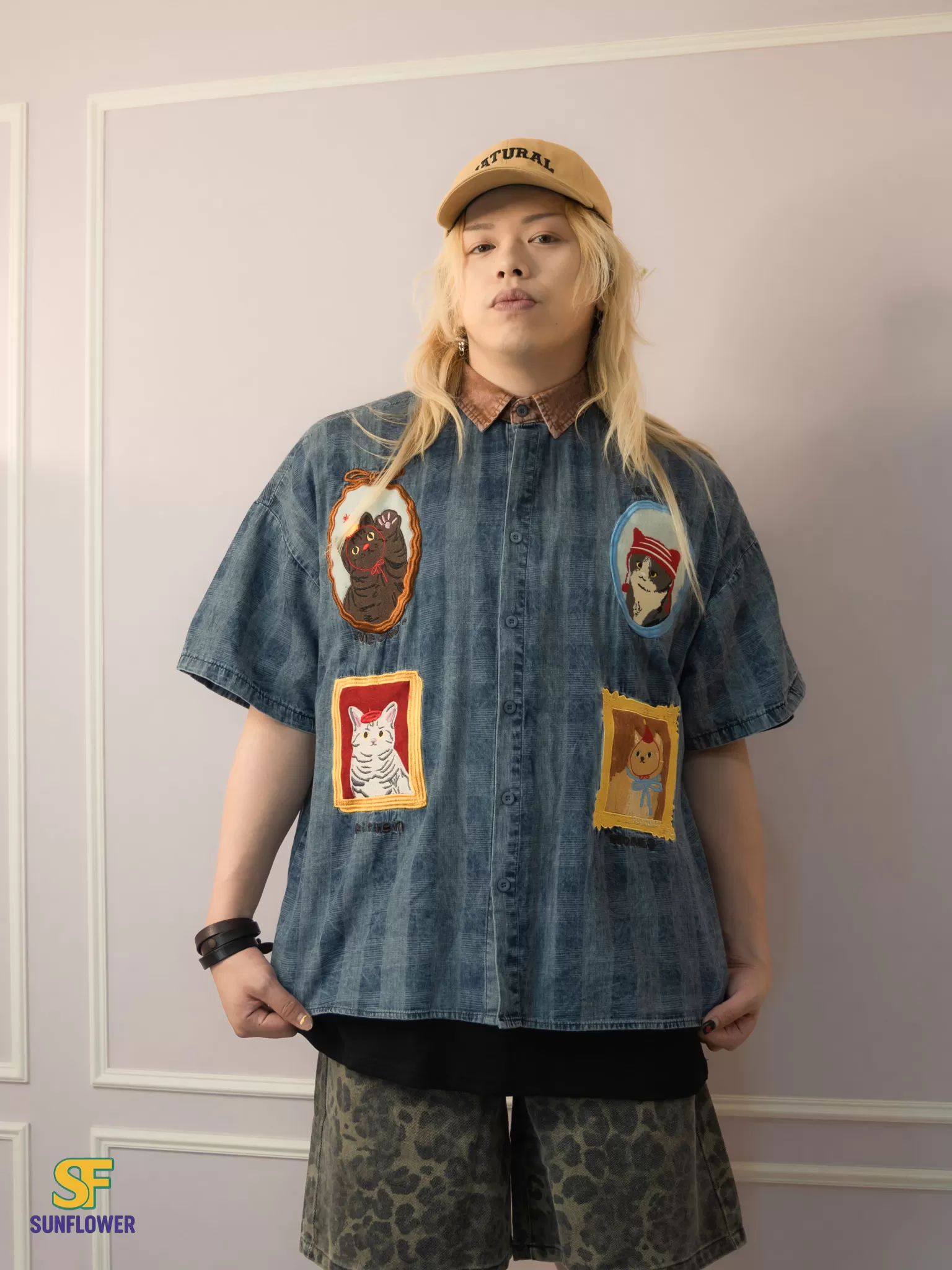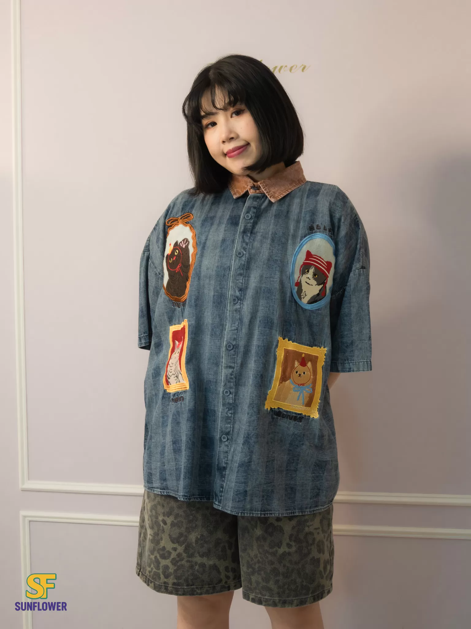 蒙娜麗莎的貓貓|復古刺繡牛仔襯衫