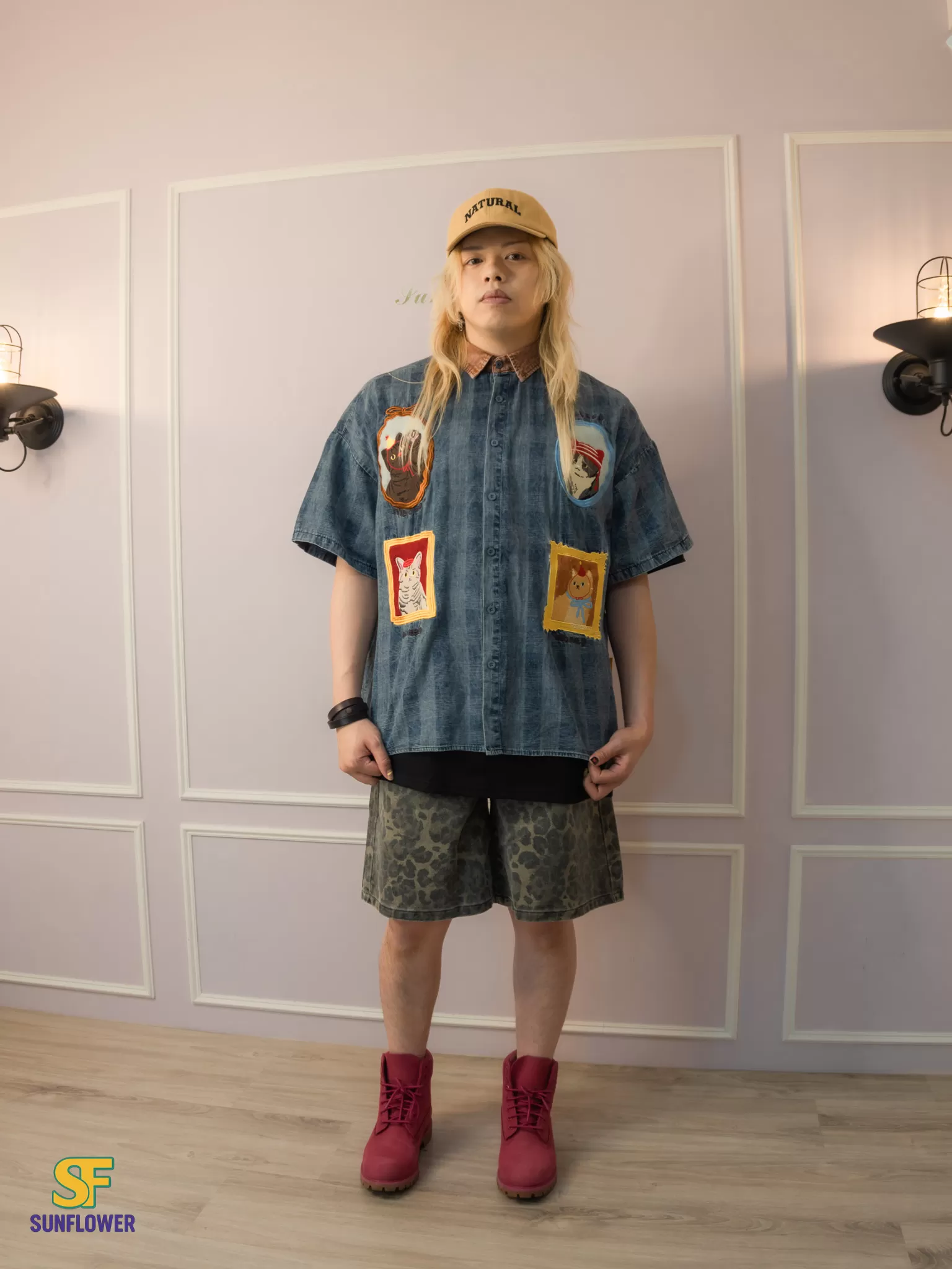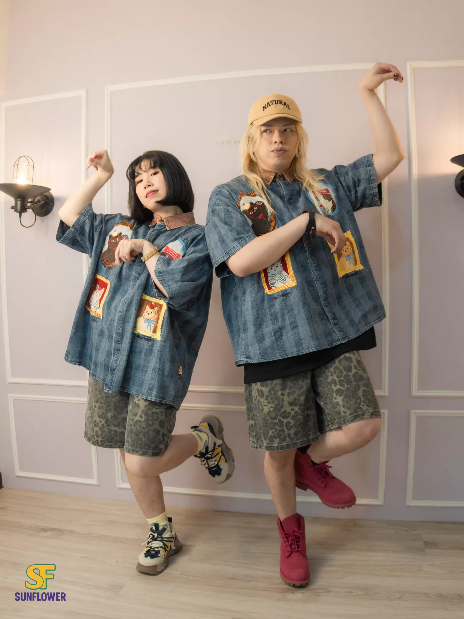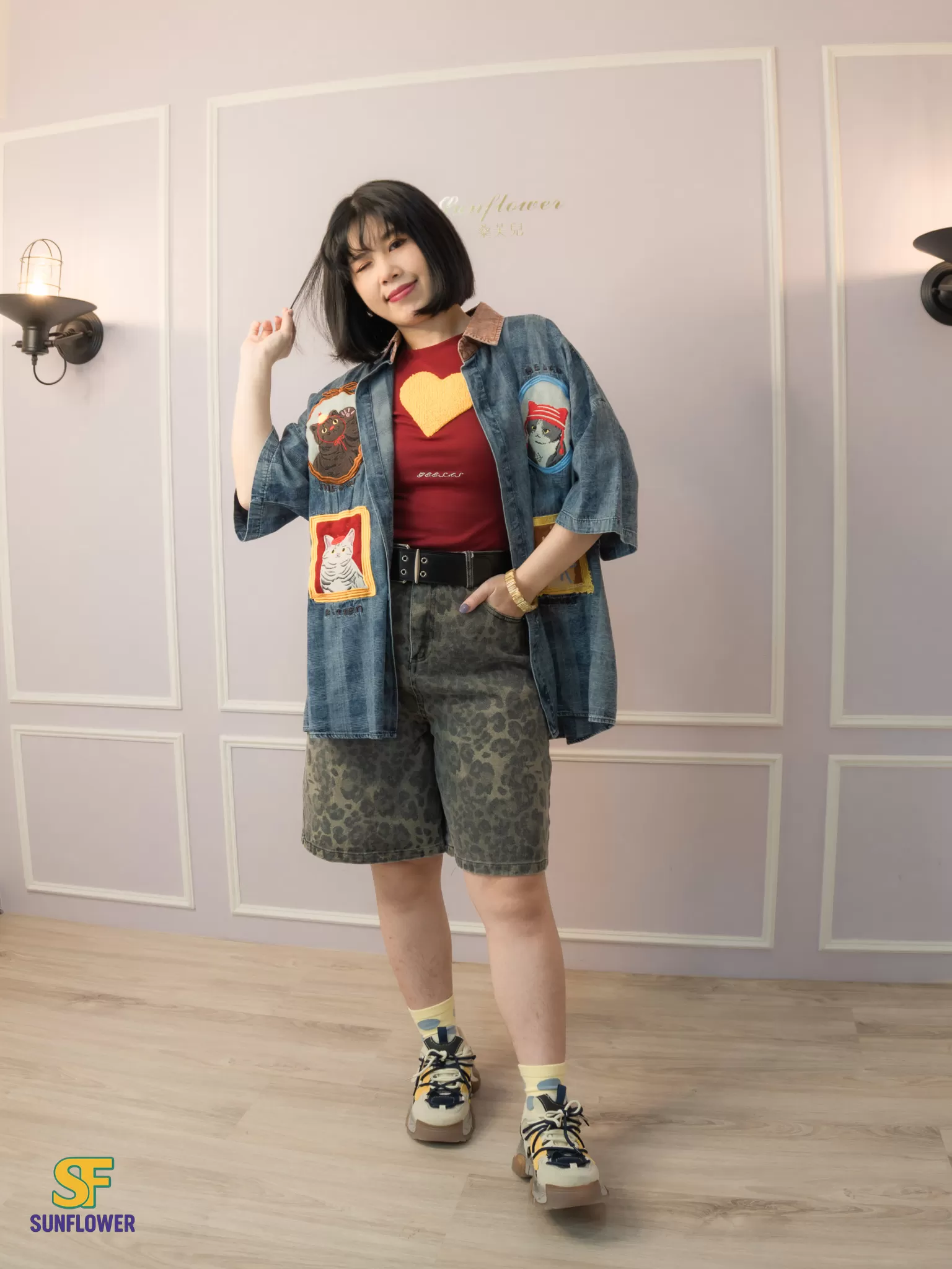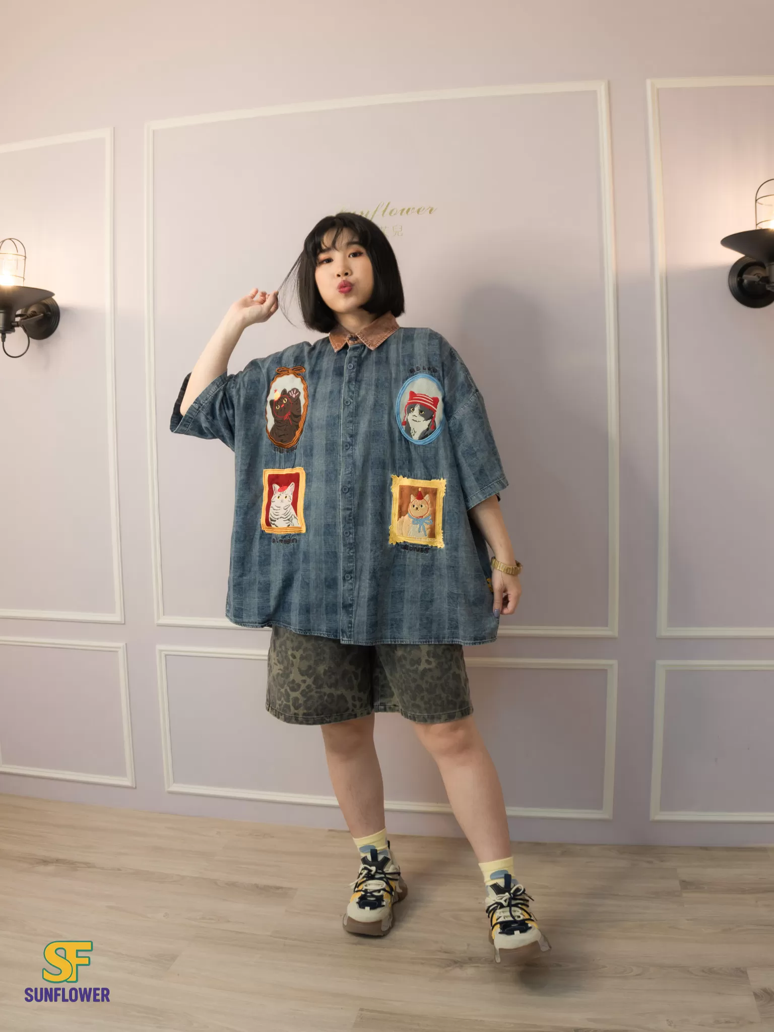 蒙娜麗莎的貓貓|復古刺繡牛仔襯衫