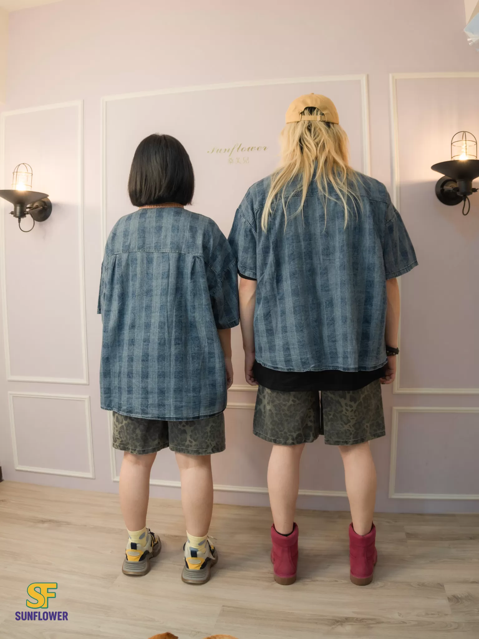 ♡ 復古格紋水洗牛仔 ➤挺度夠不悶熱,夏天單穿也舒服