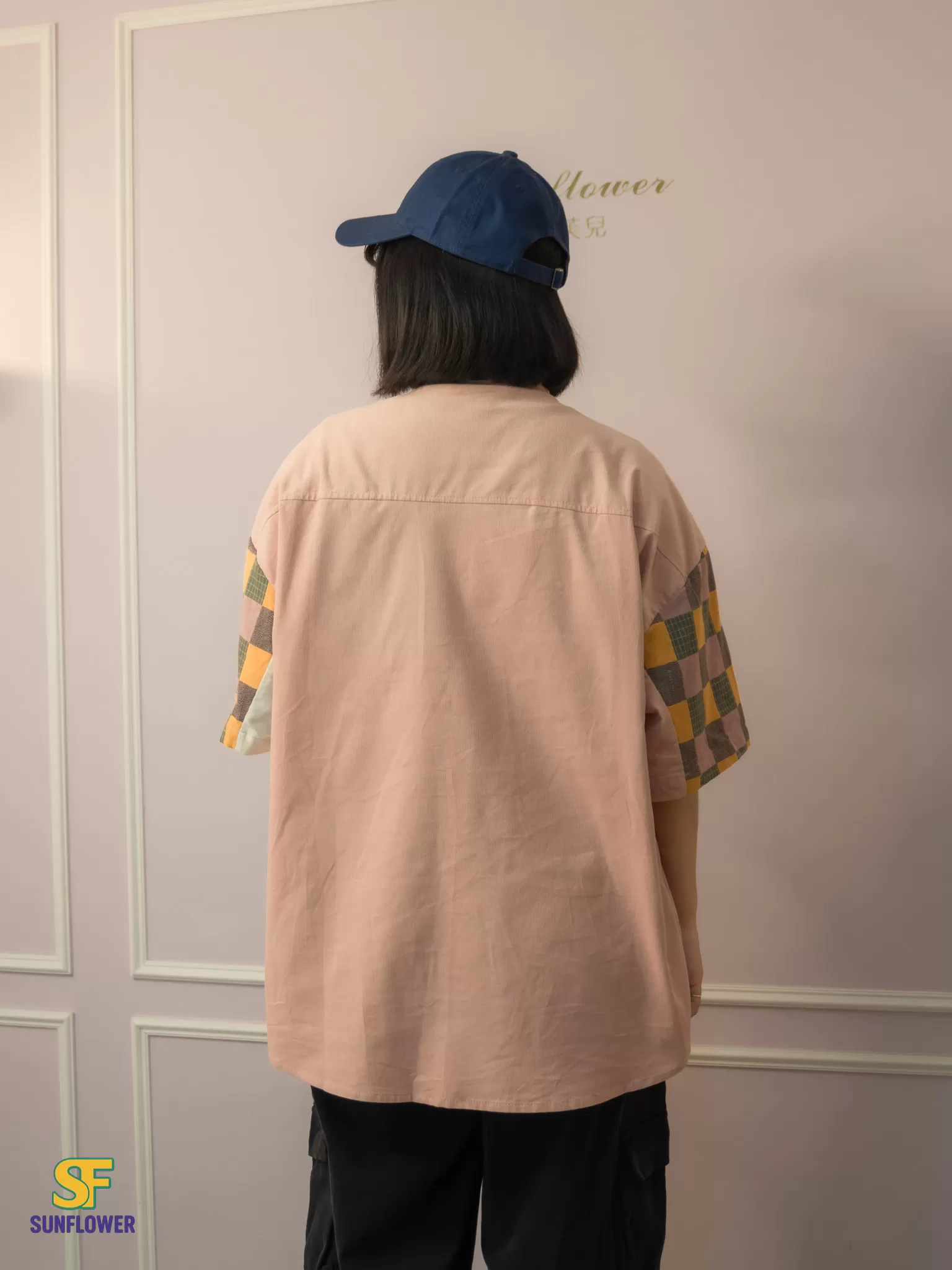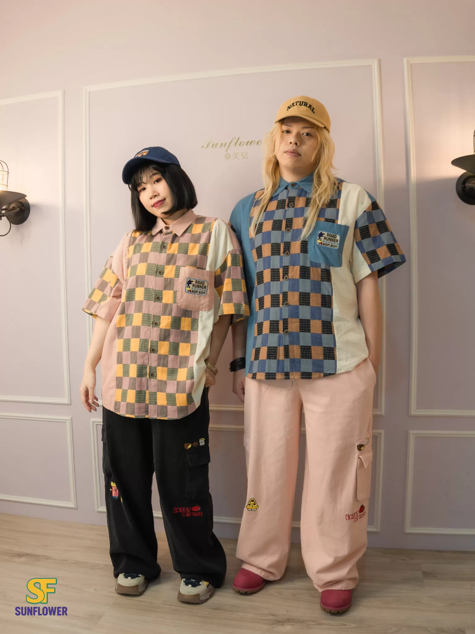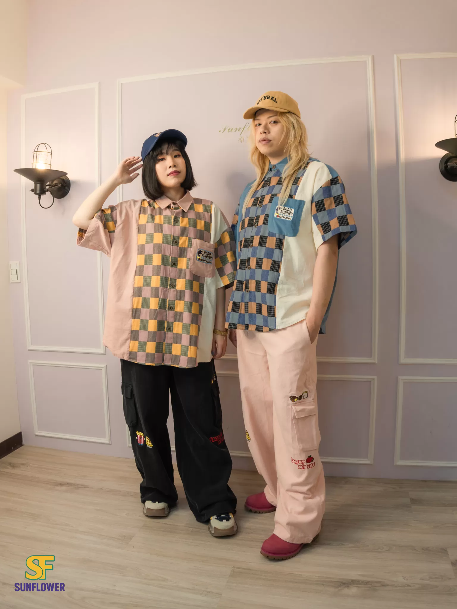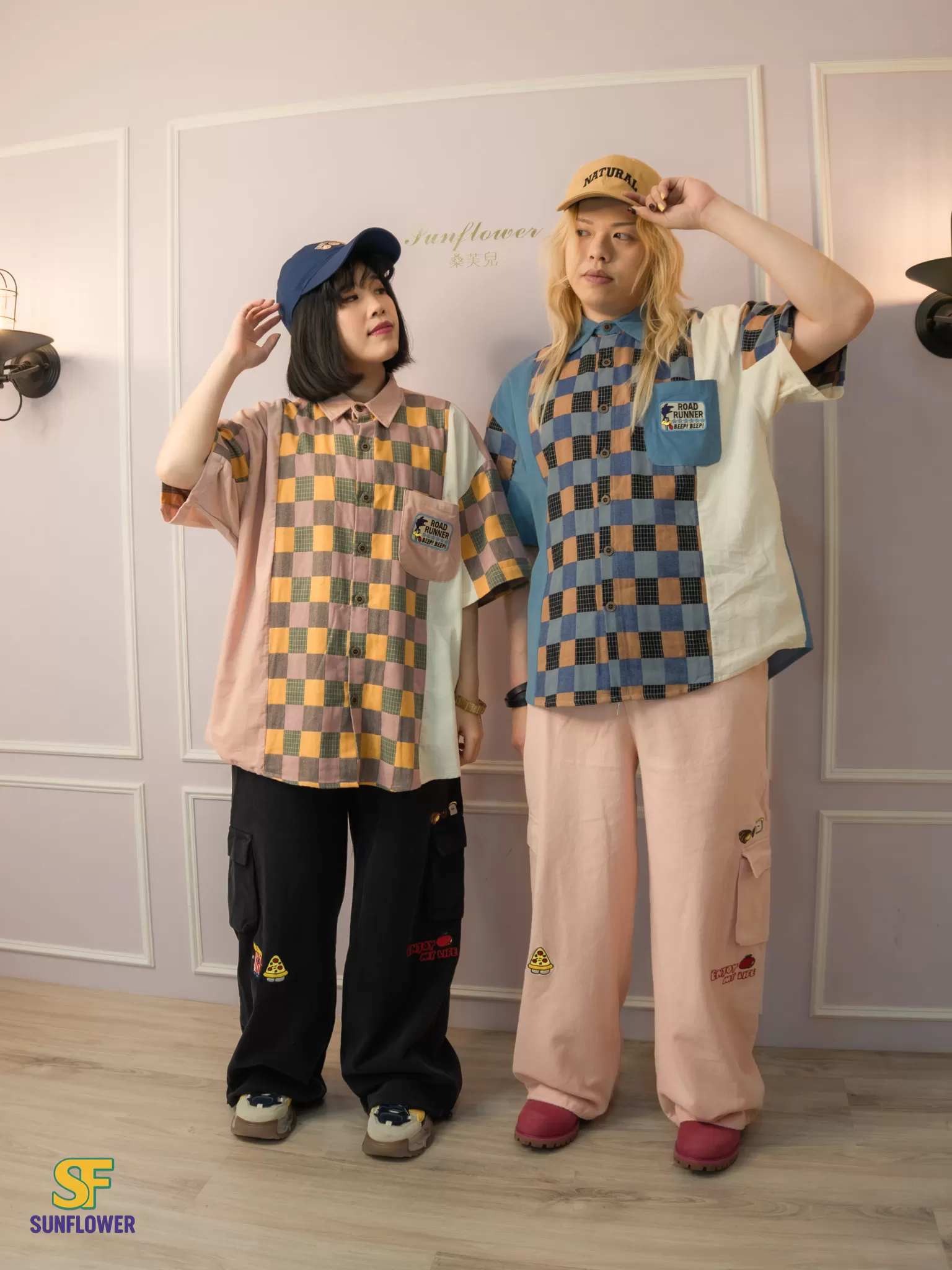 整體以復古格紋為主體,搭配拼色袖身與趣味小口袋標籤
