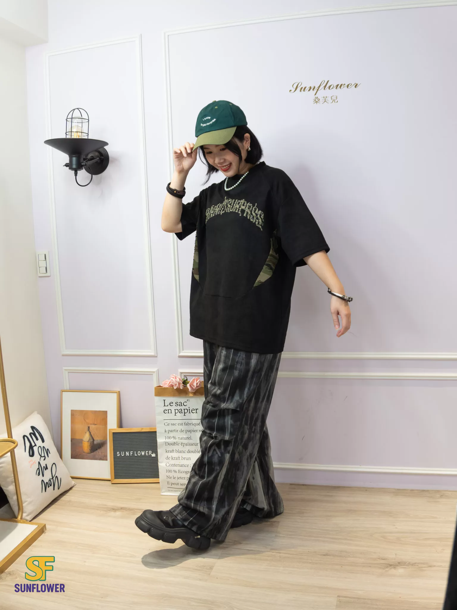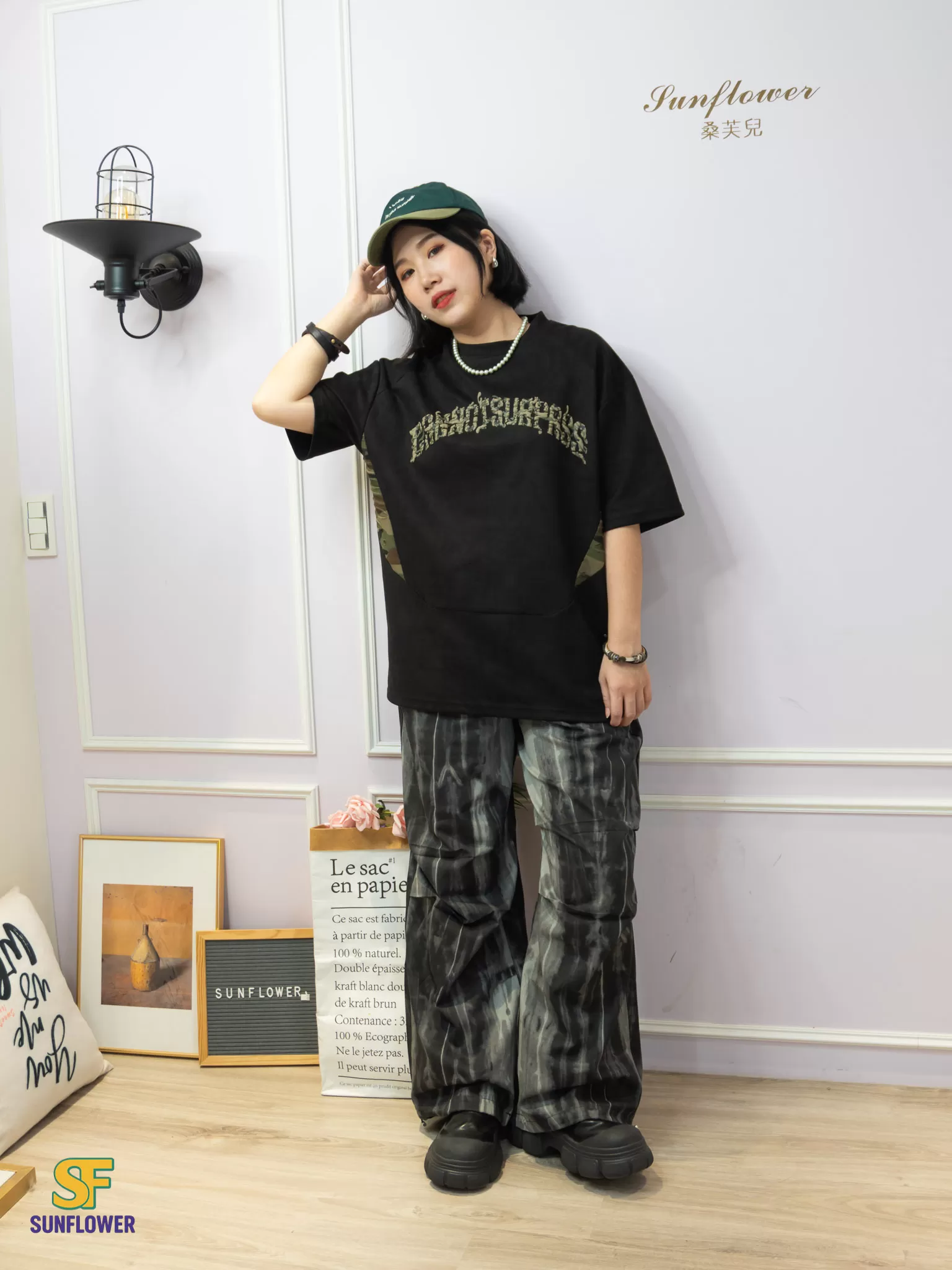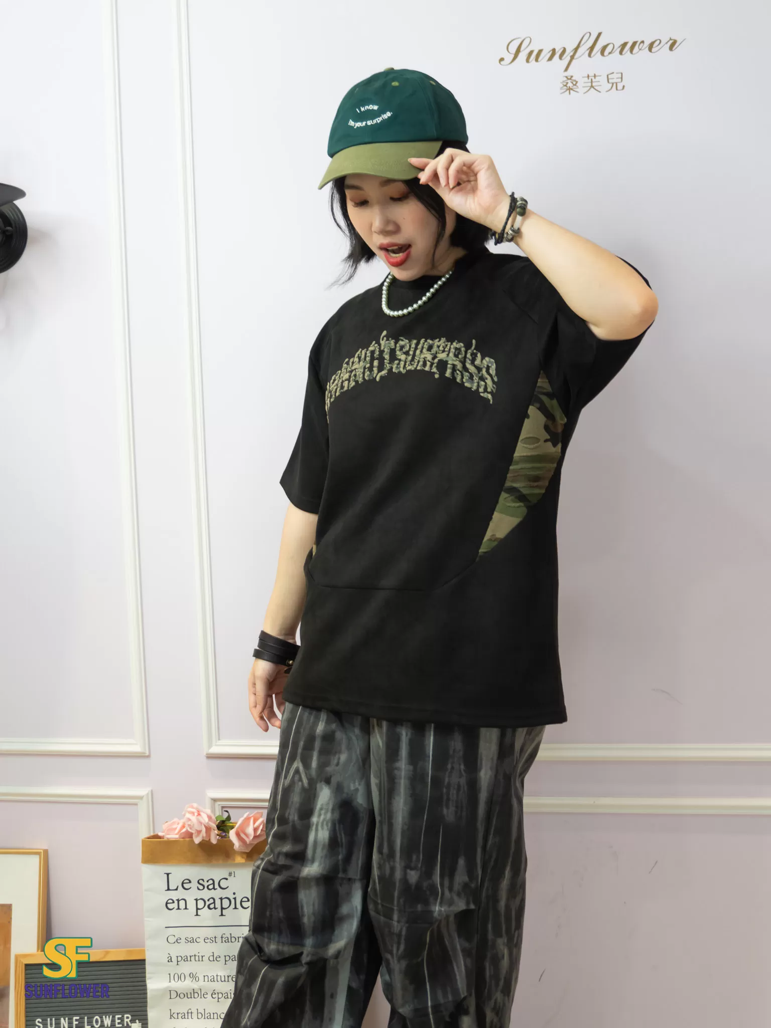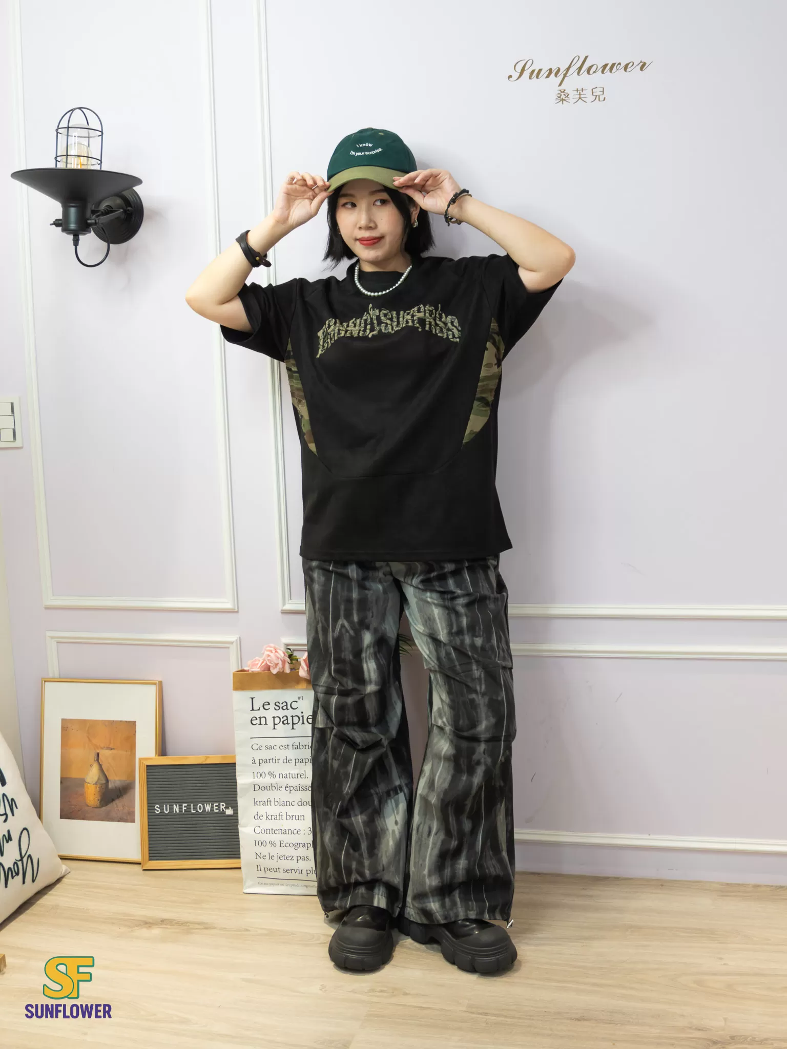 ♡ 側邊迷彩布料拼接