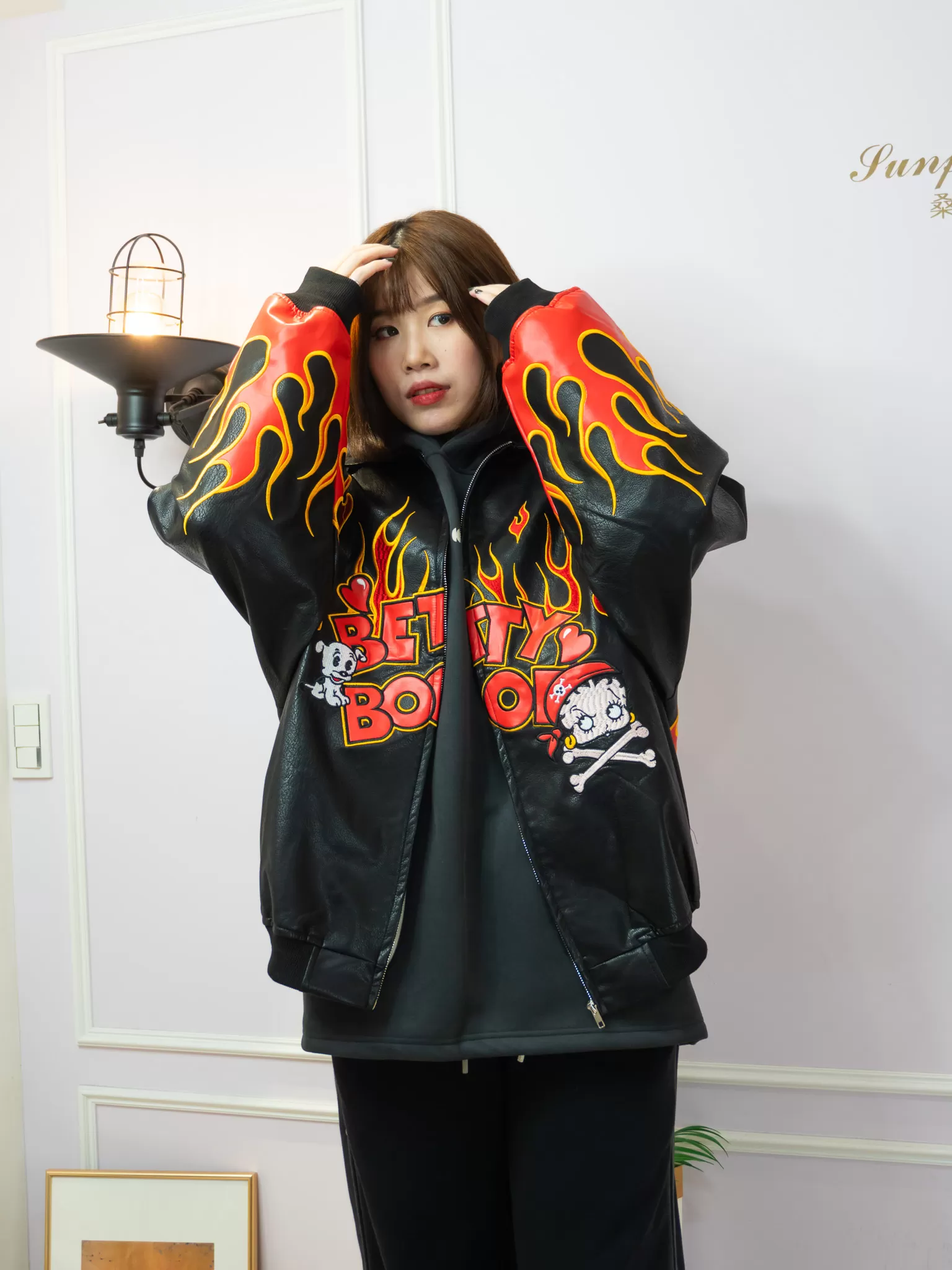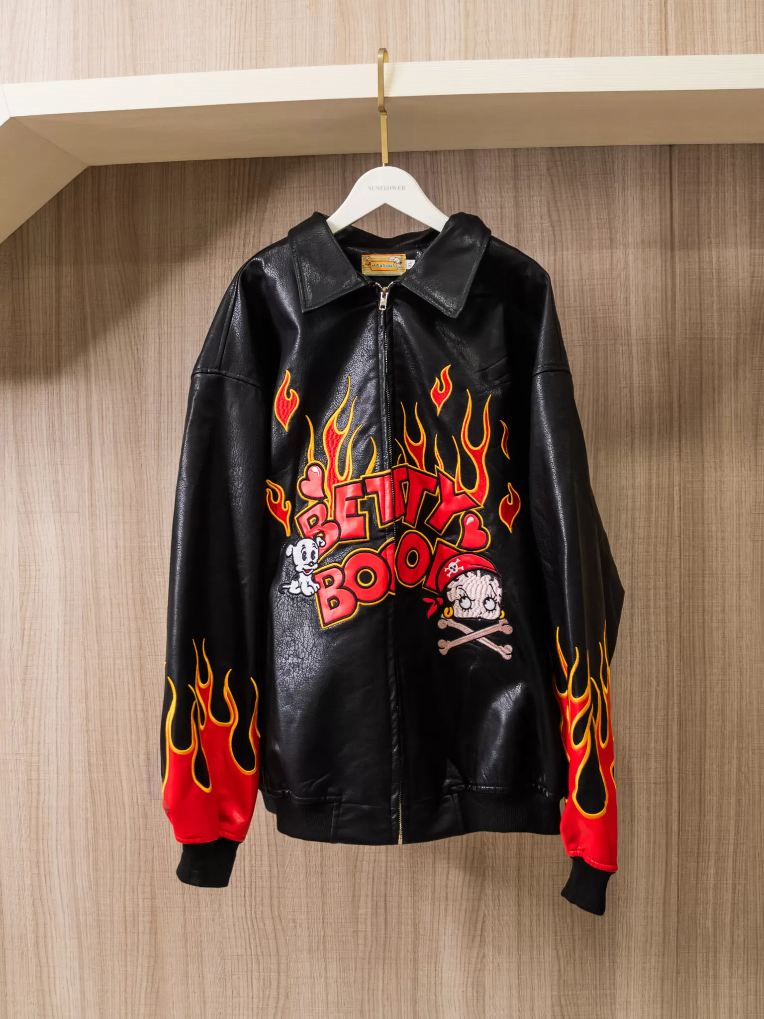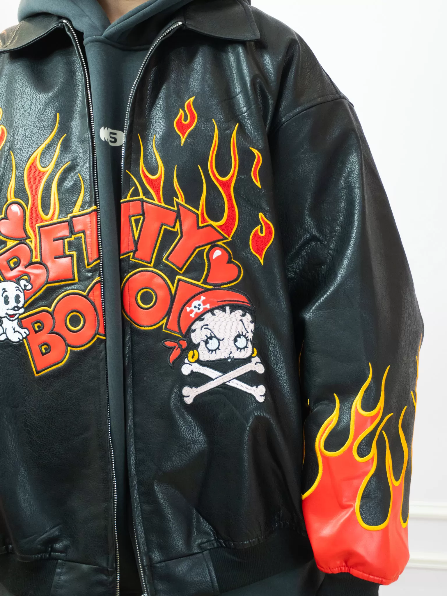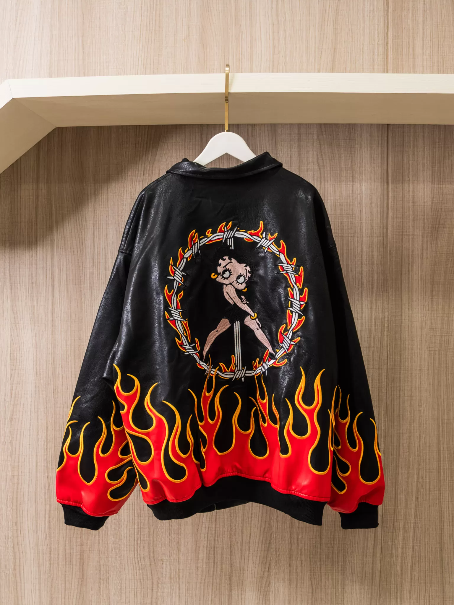 ♡前後雙面滿版火焰+超大版Betty Boop立體刺繡,就問誰不愛