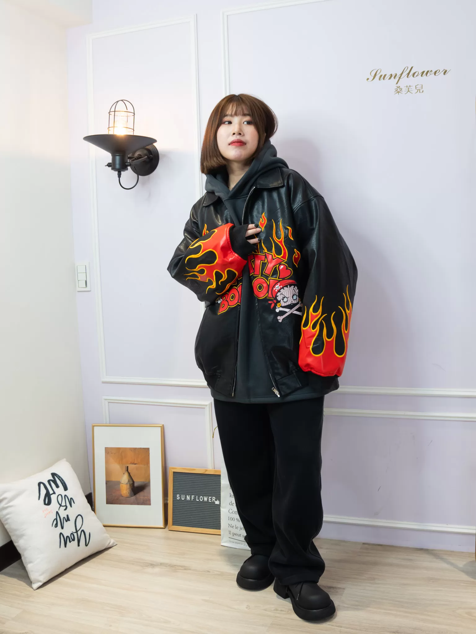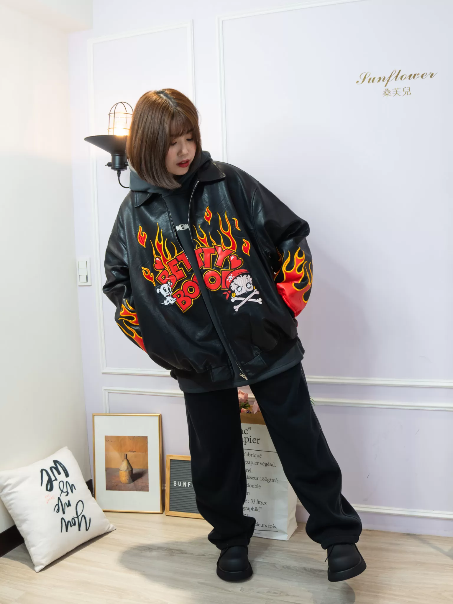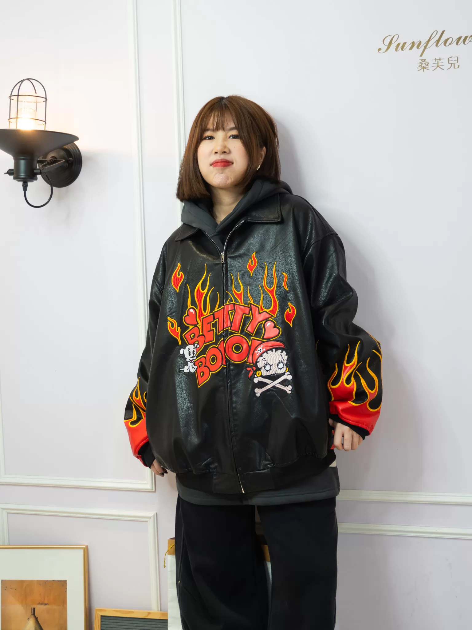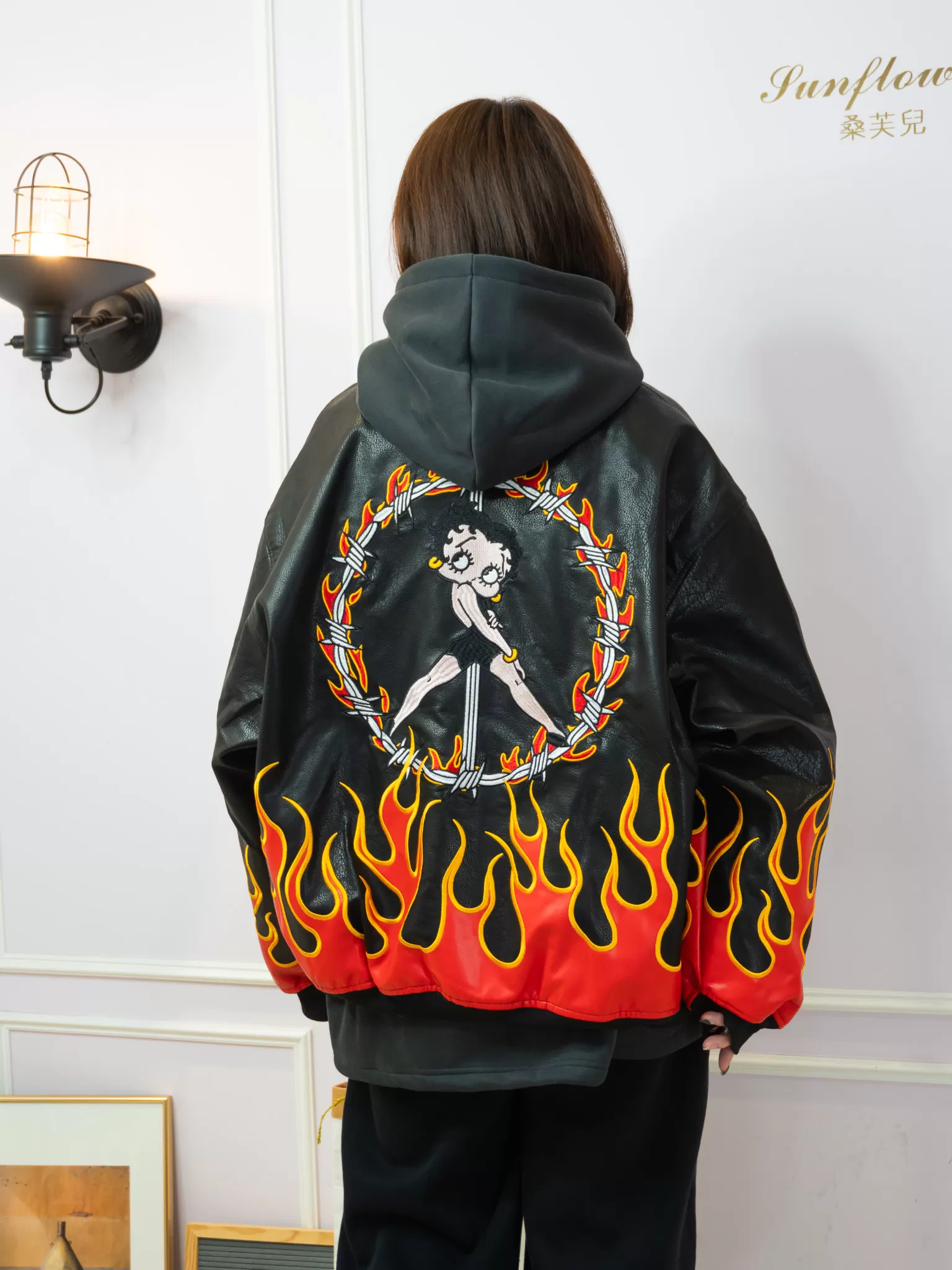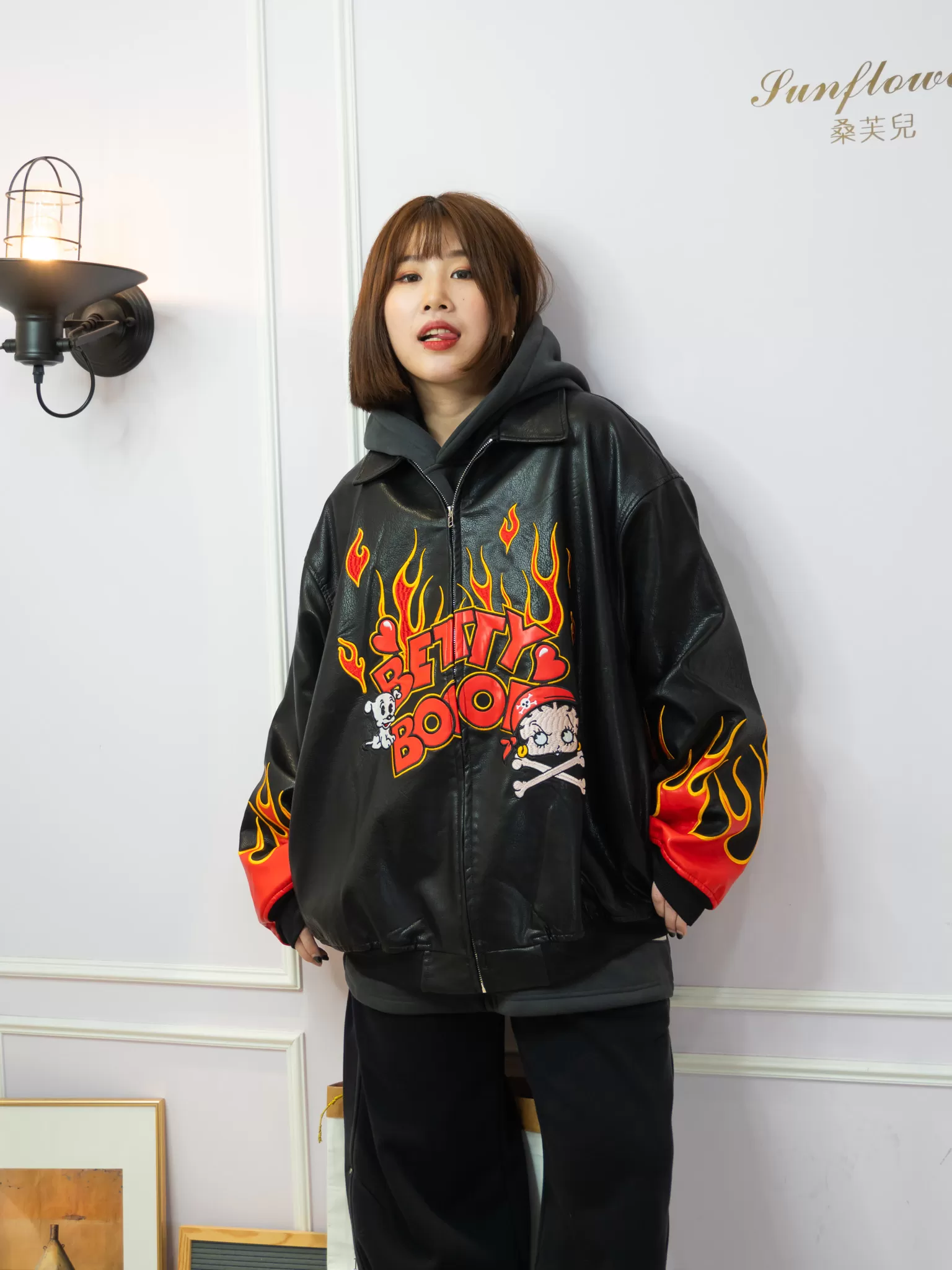 ♡前後雙面滿版火焰+超大版Betty Boop立體刺繡,就問誰不愛