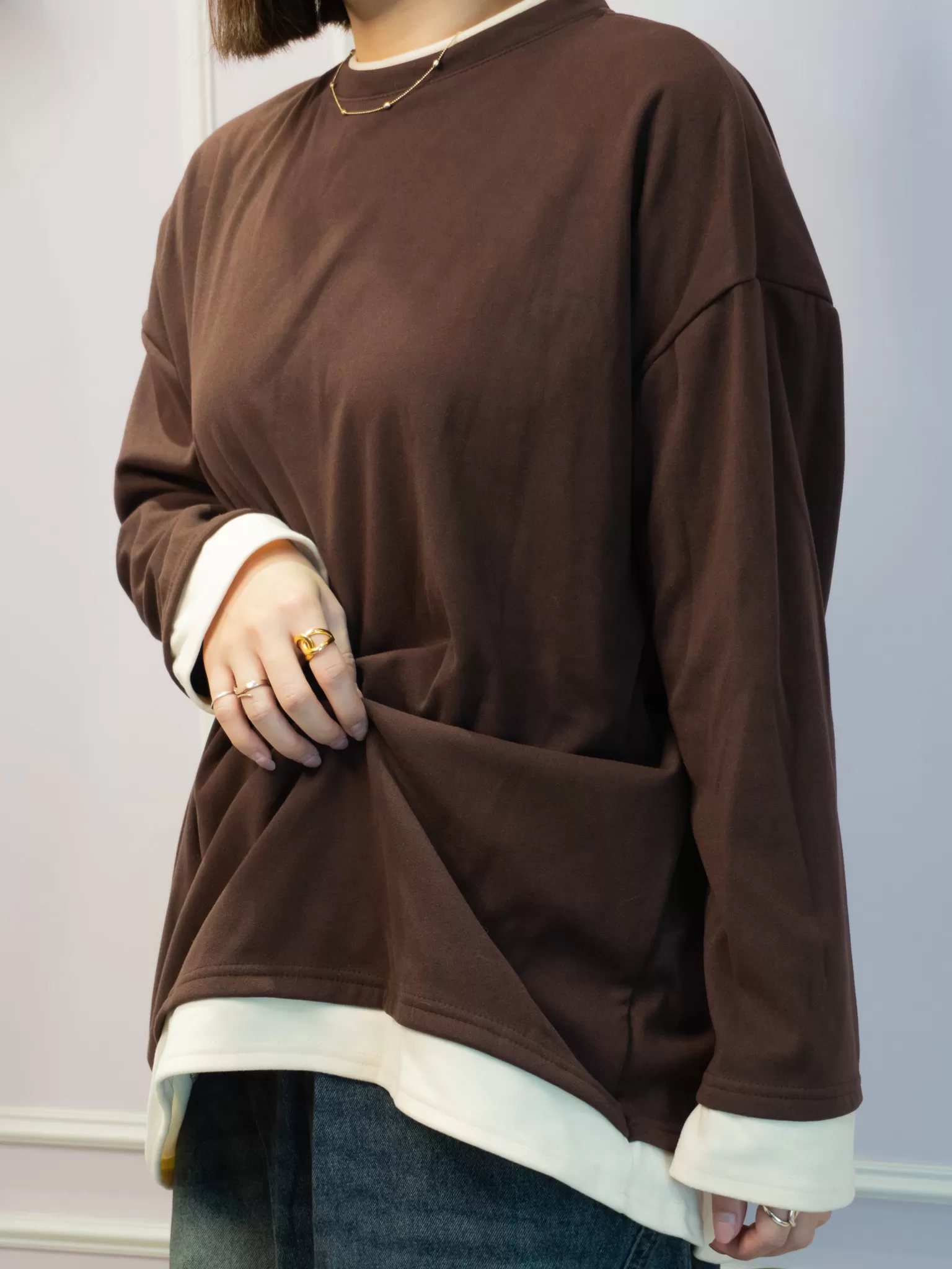 ■不補貨|假兩件德絨保暖寬鬆長袖上衣