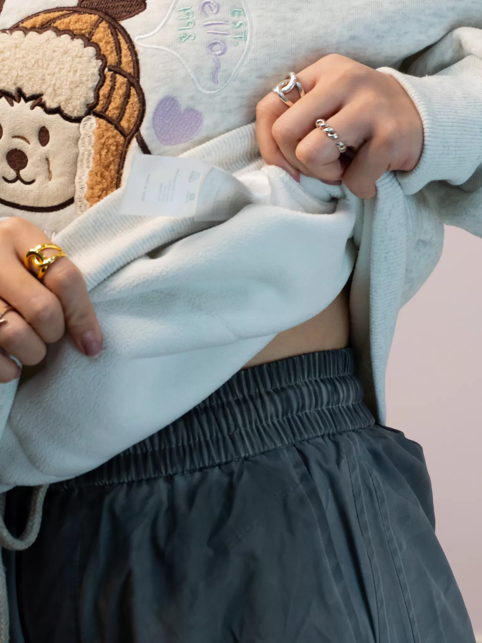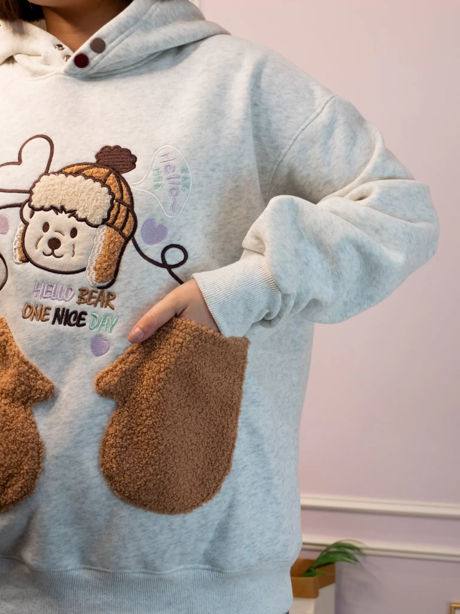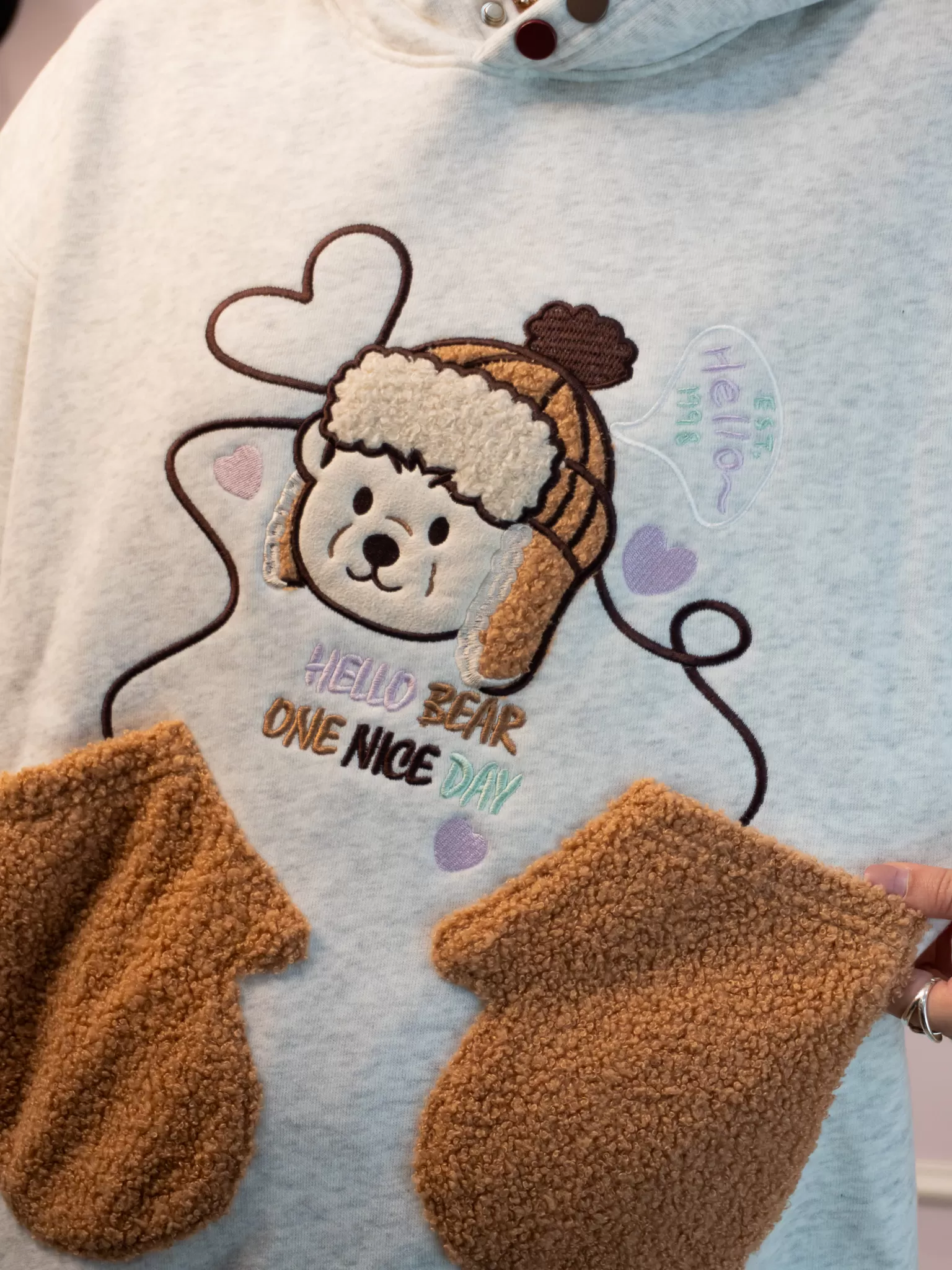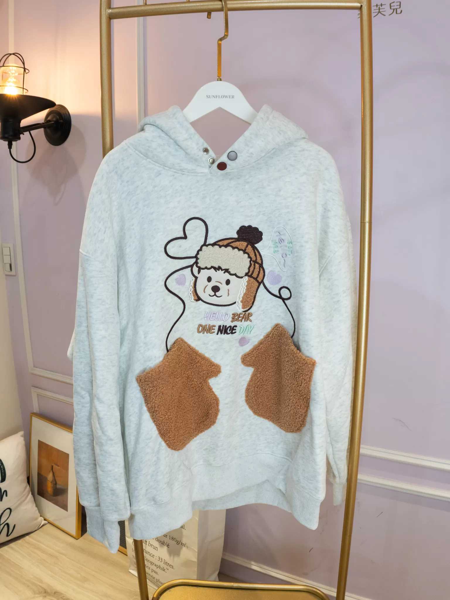 這件真的可愛到不行,小熊刺繡加立體口袋很療癒,