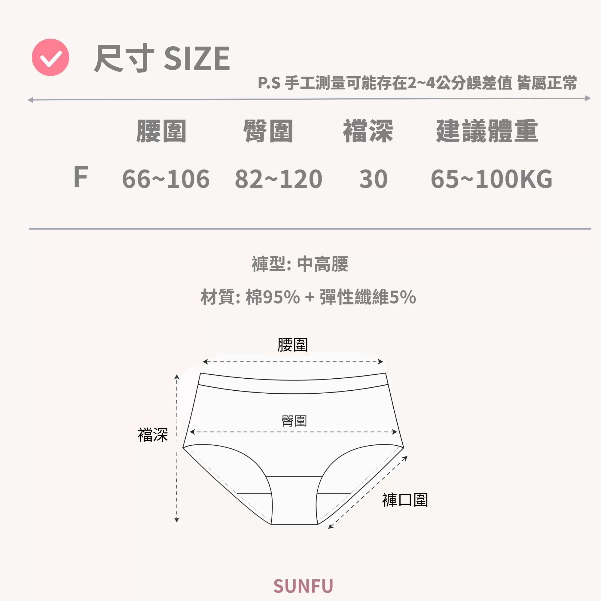 安心大尺碼系列|純棉碎花中高腰內褲 (6色) 65~100KG